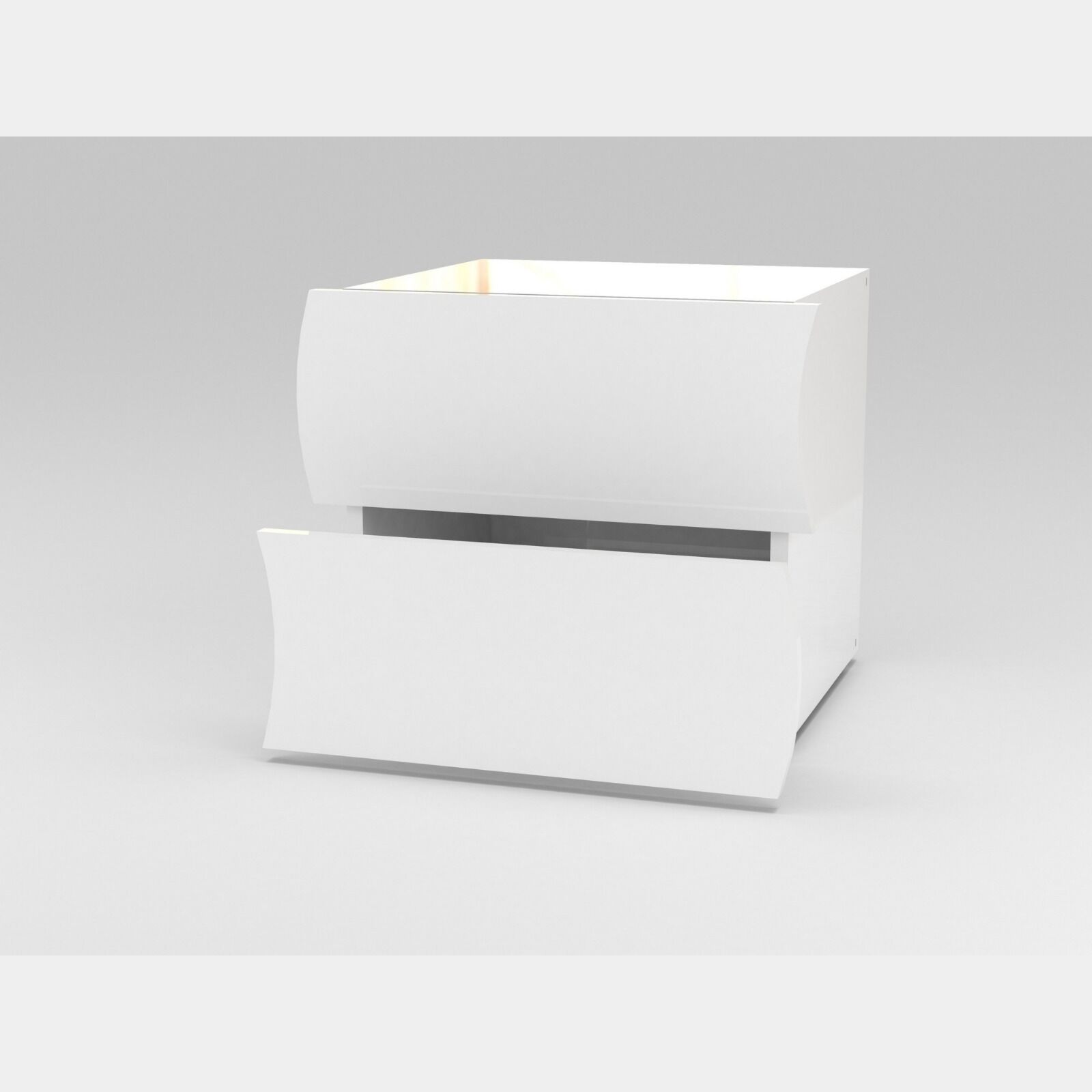 Comodino di design a 2 cassetti sagomati, bianco lucido, linea onda