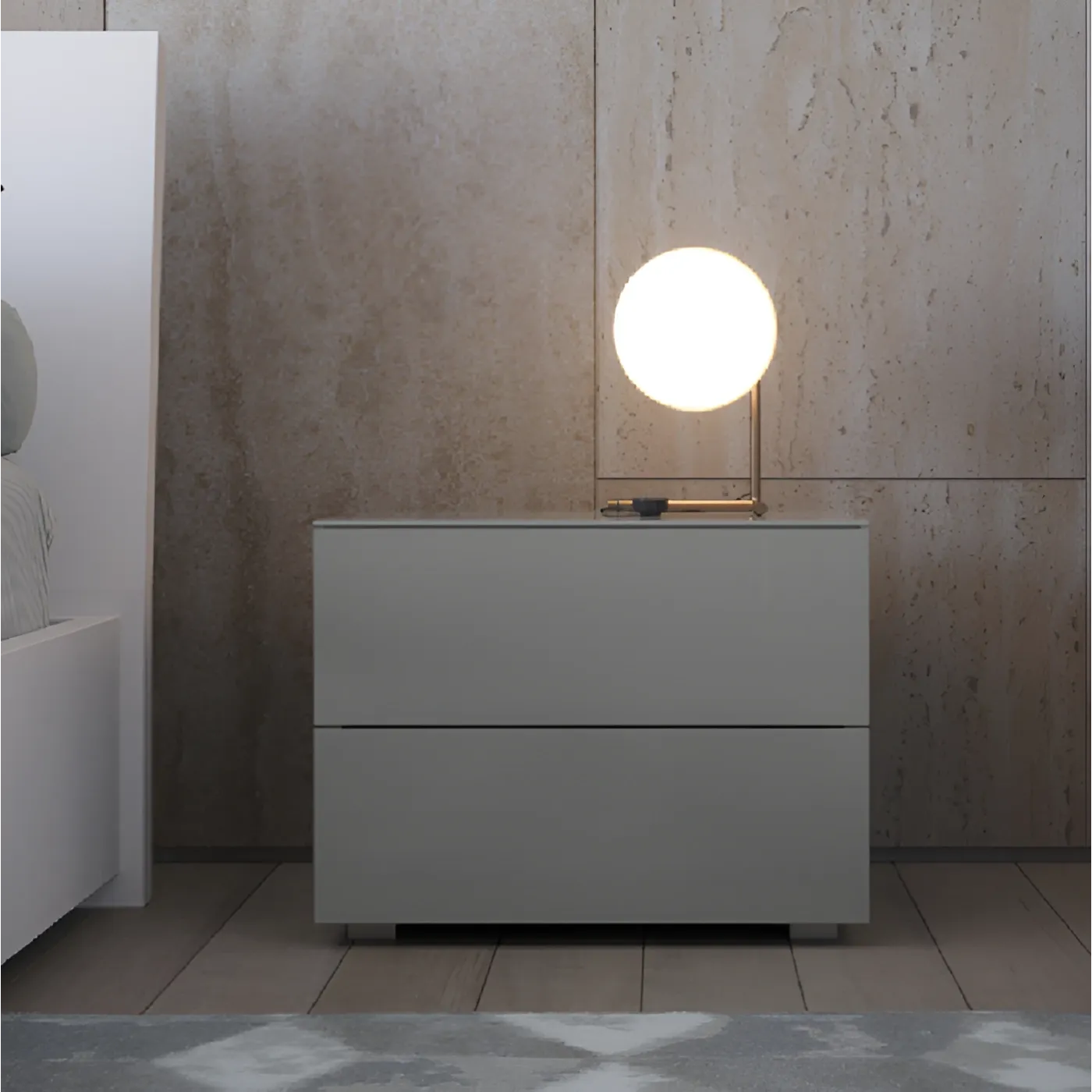 La particolarità del comodino sta nel design super pulito e essenziale. Non ci sono maniglie a vista: l'apertura avviene a presa laterale, il che rende l'aspetto complessivo super lineare e contemporaneo. È un dettaglio che fa la differenza, dando al mobile un tocco di raffinatezza in più.