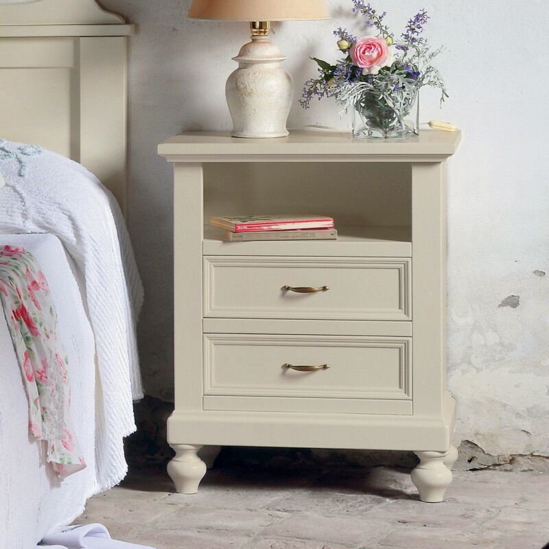 Comodino elegante e sofisticato, si ambienta perfettamente nell’arredamento della vostra camera da letto donandogli un tocco di originalità. Molto spazioso grazie ai cassetti e al vano a giorno. Sofisticate le maniglie anticate e i piedini bombati.