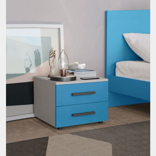 Comodino Master moderno, 2 cassetti, finitura Cadaques e Cemento Artico