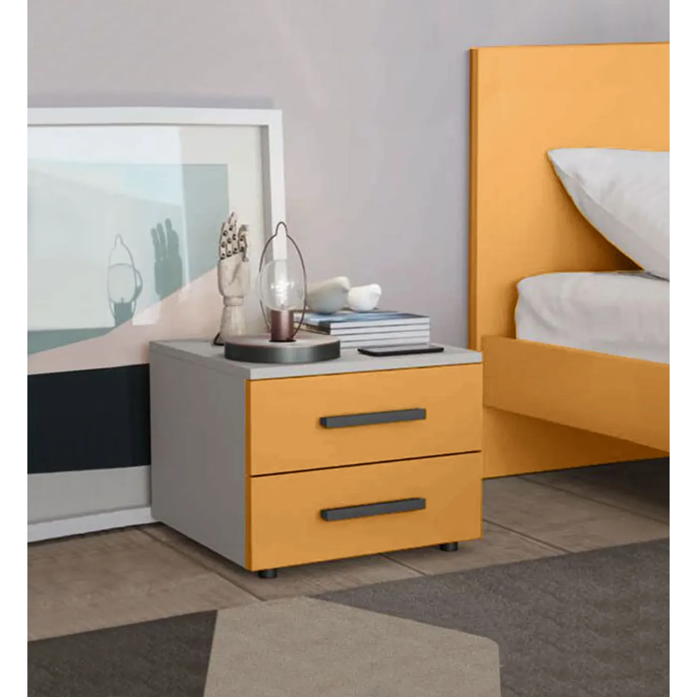 Comodino Master moderno, 2 cassetti, finitura Miele e Cemento Artico