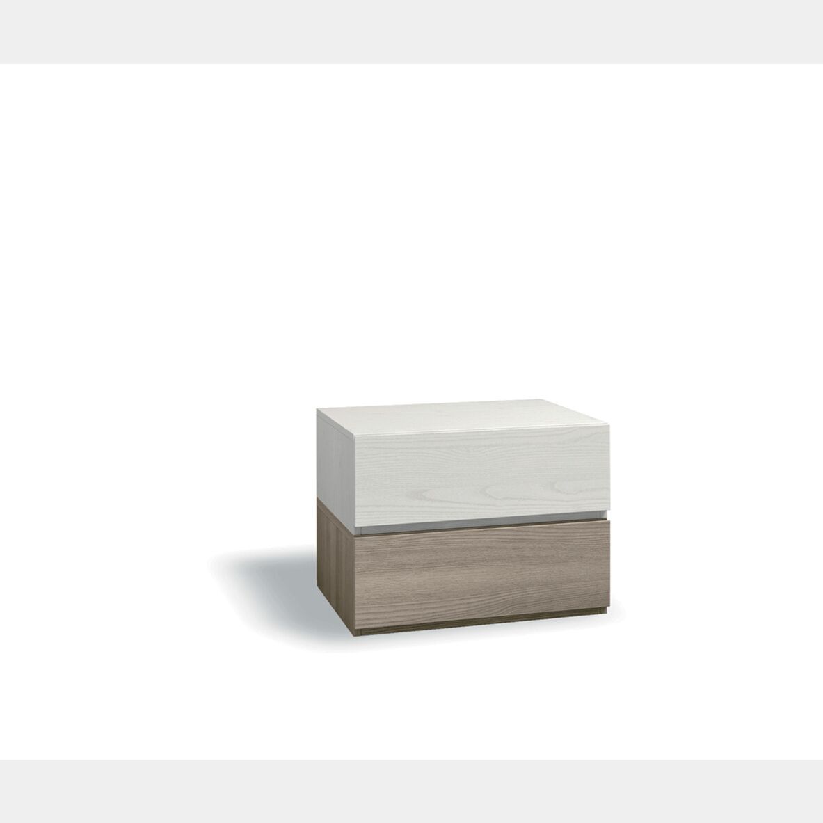 Comodino moderno con 2 cassetti di alta qualità in finitura Frassinato bianco e Olmo