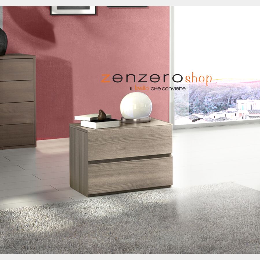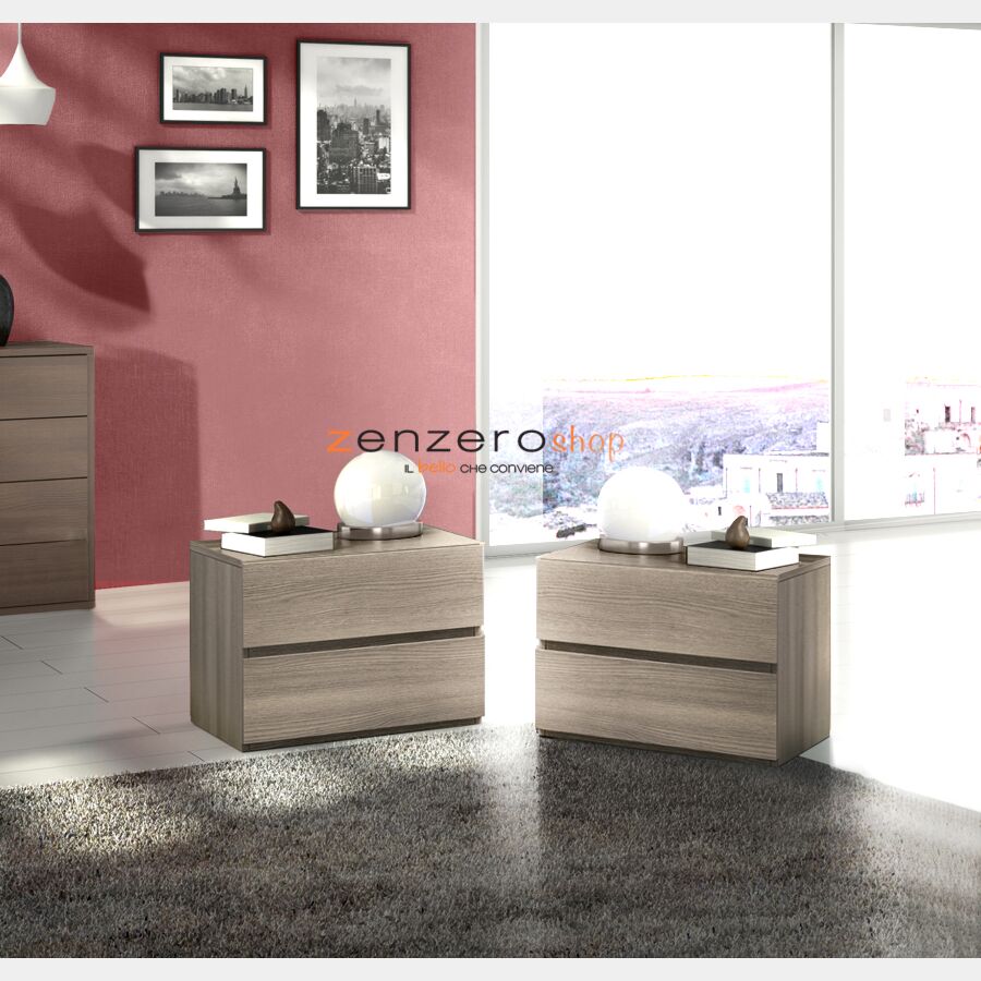 Comodino moderno con 2 cassetti di alta qualità in finitura Olmo