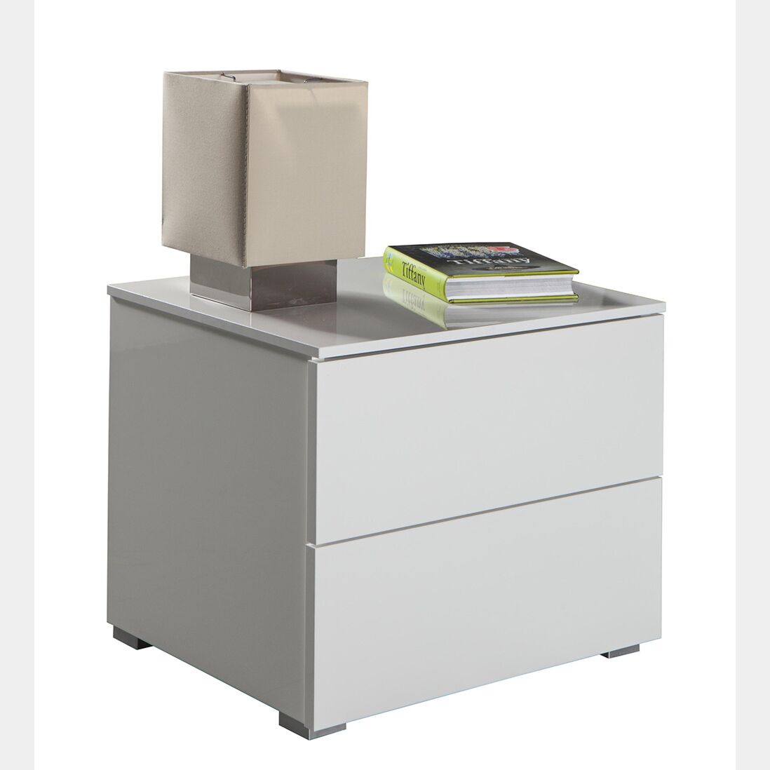 Comodino moderno con 2 cassetti in Bianco laccato lucido