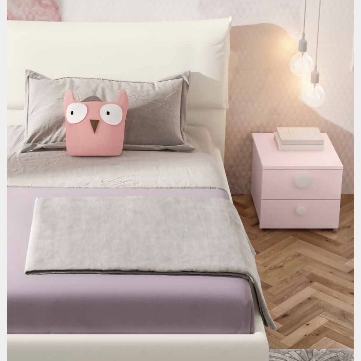 Il Comodino moderno a 2 cassetti per la zona notte della Collezione POP è ideale per arredare la cameretta della tua bambina, perché unisce una finitura colorata come il Rosa confetto e delle linee moderne che porteranno eleganza nella stanza. Ad accostare il comodino, c'è un Comò a 3 cassetti, sempre in finitura Rosa Confetto e con delle maniglie Spin bianche. Come Optional è possibile aggiungere al comodino dei piedini H.10 cm o delle ruote, mentre al comò è possibile aggiungere solamente i piedini H.10 cm.