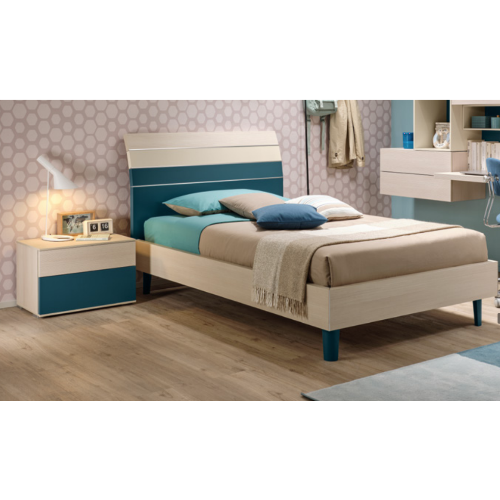 Comodino per camerette Moretti Compact, 2 cassetti in Larice e Pavone