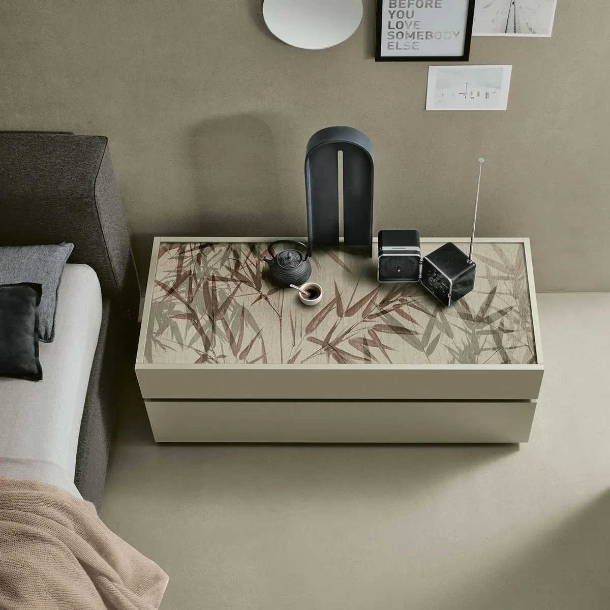 Comodino Replay Tomasella, finitura Arena con top vetro grafica