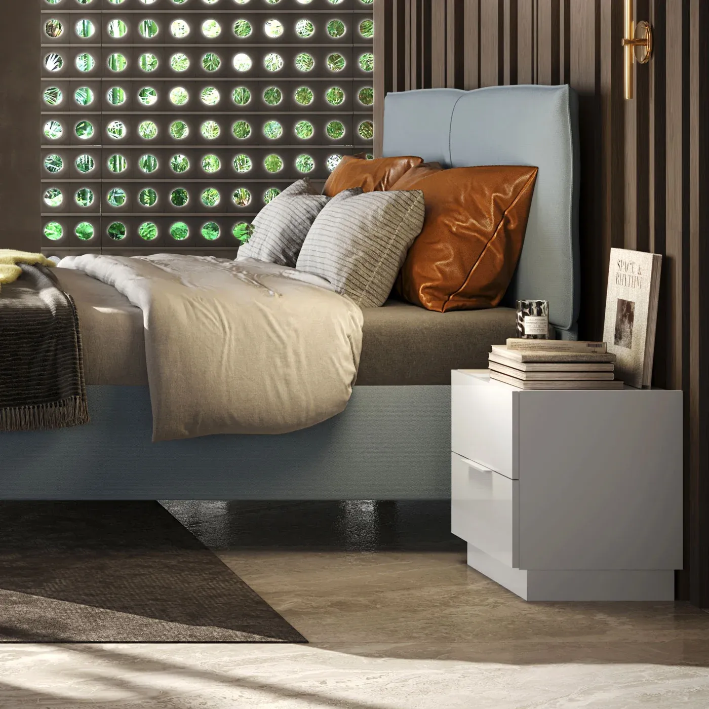 Comodino moderno con due cassetti in finitura Bianco lucido