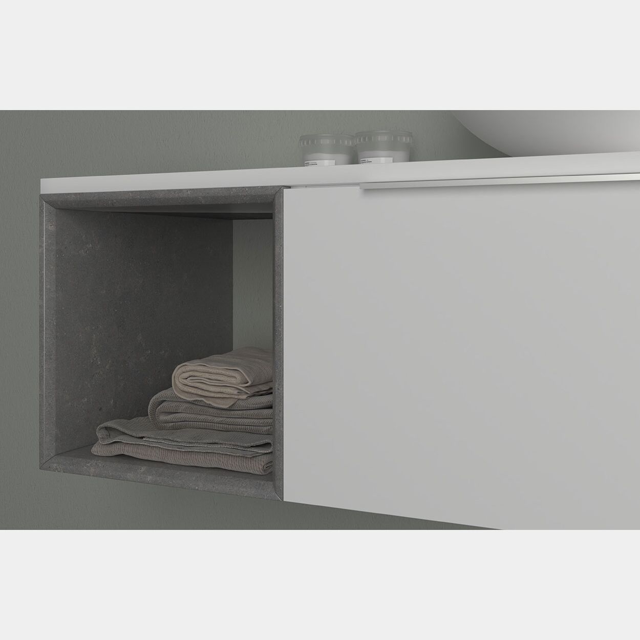 Composizione bagno sospesa Bianco con cubotto in pietra naturale Grigia