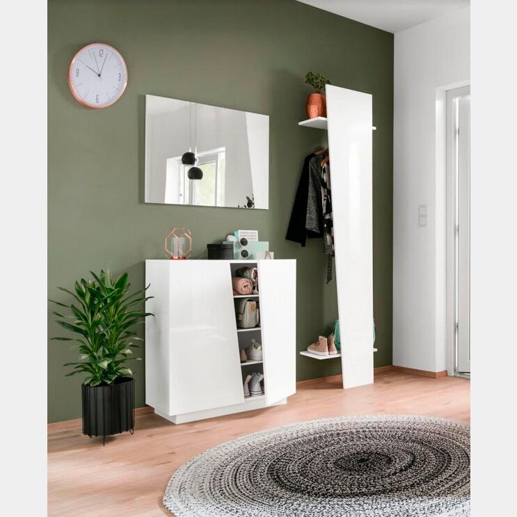Composizione d'ingresso, Appendiabiti e Scarpiera, finitura Bianco Lucido