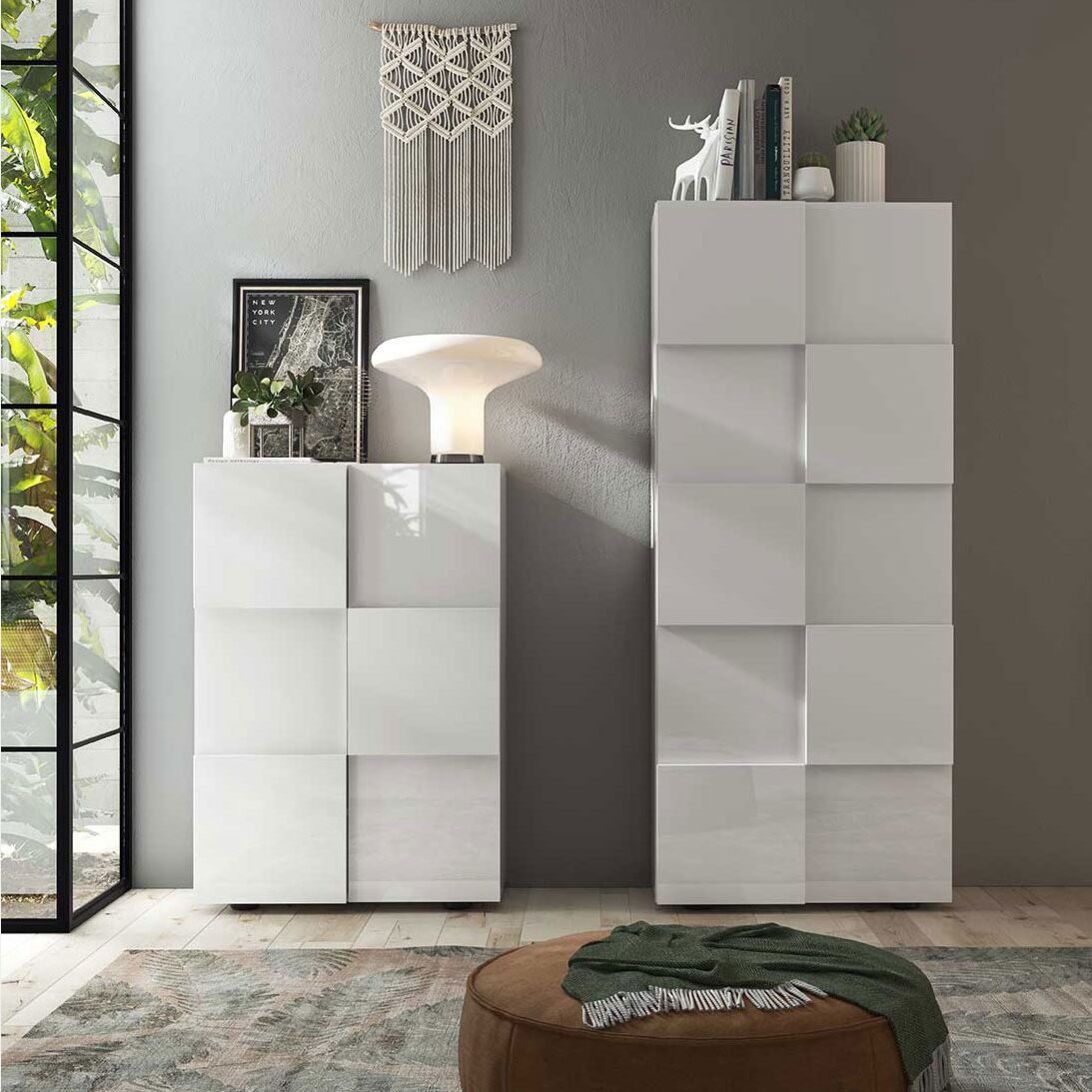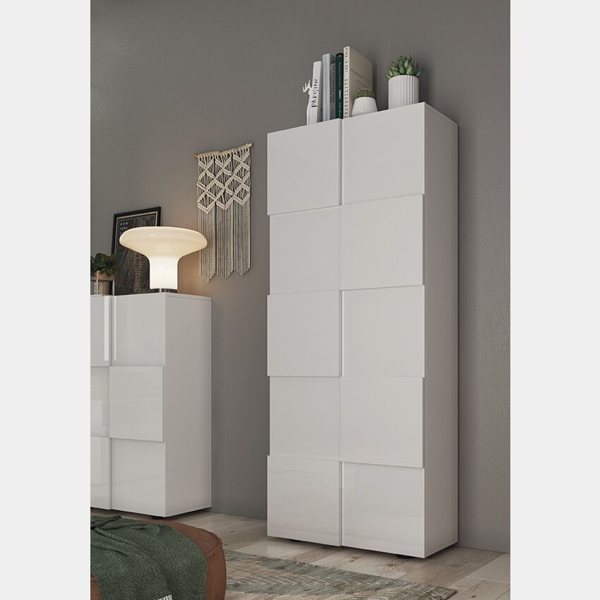 Composizione d'ingresso con guardaroba e madia, bianco lucido