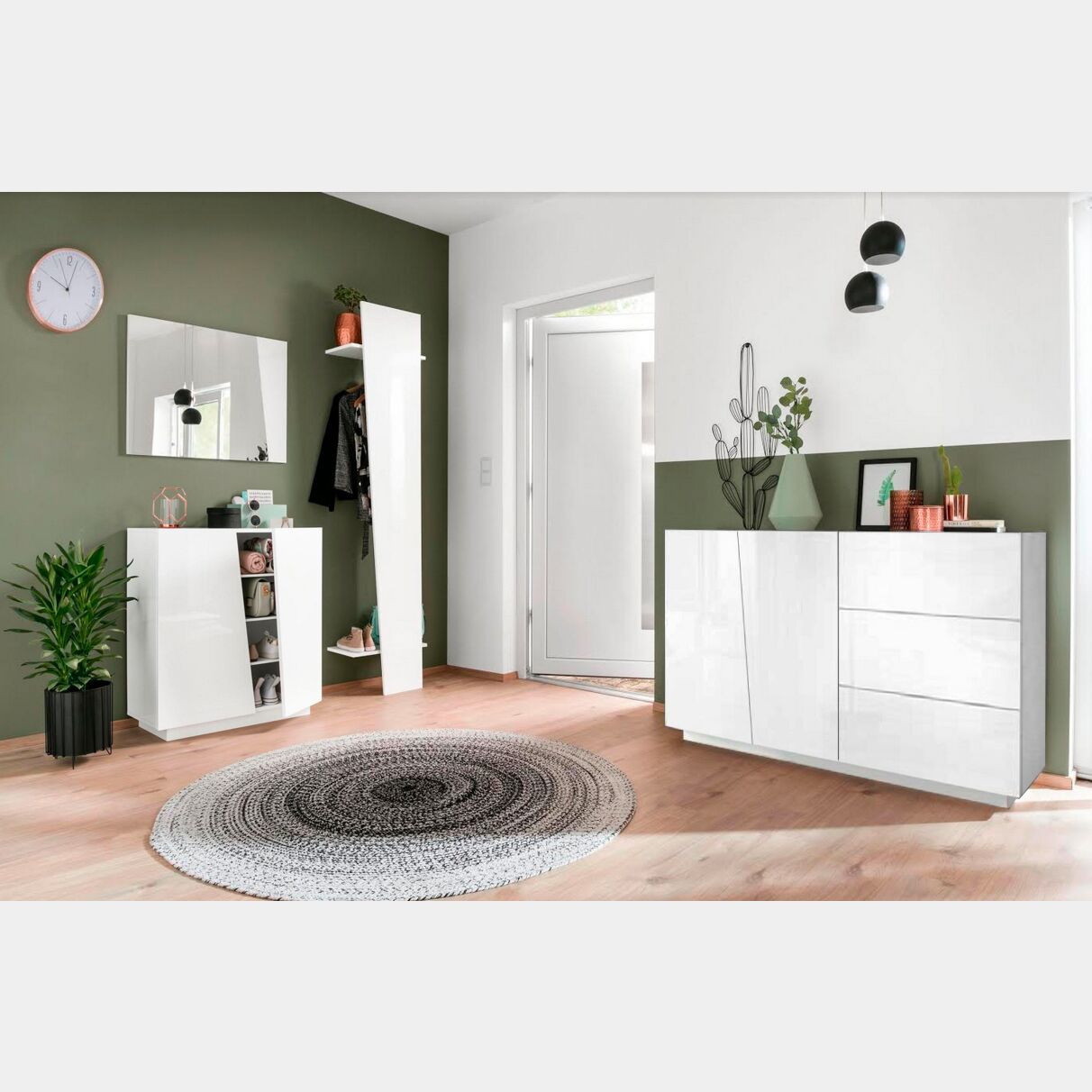Composizione d'ingresso, Madia, Appendiabiti e Scarpiera, finitura Bianco Lucido