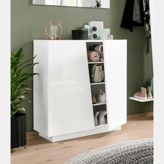 Il prodotto è una scarpiera di design moderno e funzionale per un arredamento informale e di sicuro impatto. La scarpiera è disponibile nella colorazione bianco lucido ed ha 2 ante battenti.