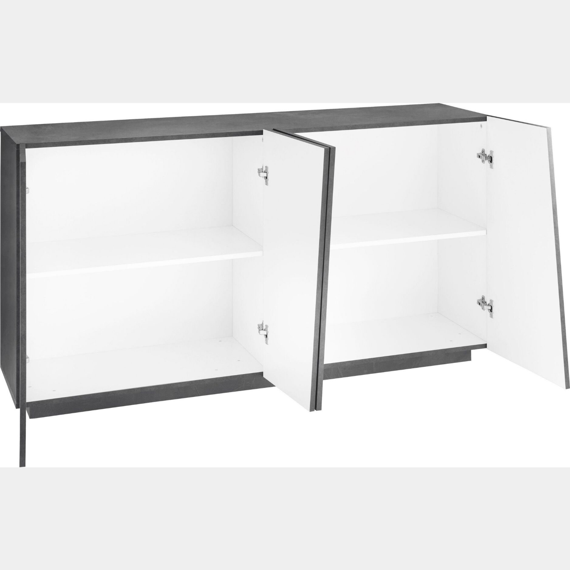 Madia credenza 4 ante in finitura bianco lucido, la caratteristica che contraddistingue questa madia credenza sono le ante assimetriche. Questo è un particolare che rende questa madia estremamente di tendenza, con un design pulito ma accattivante.
