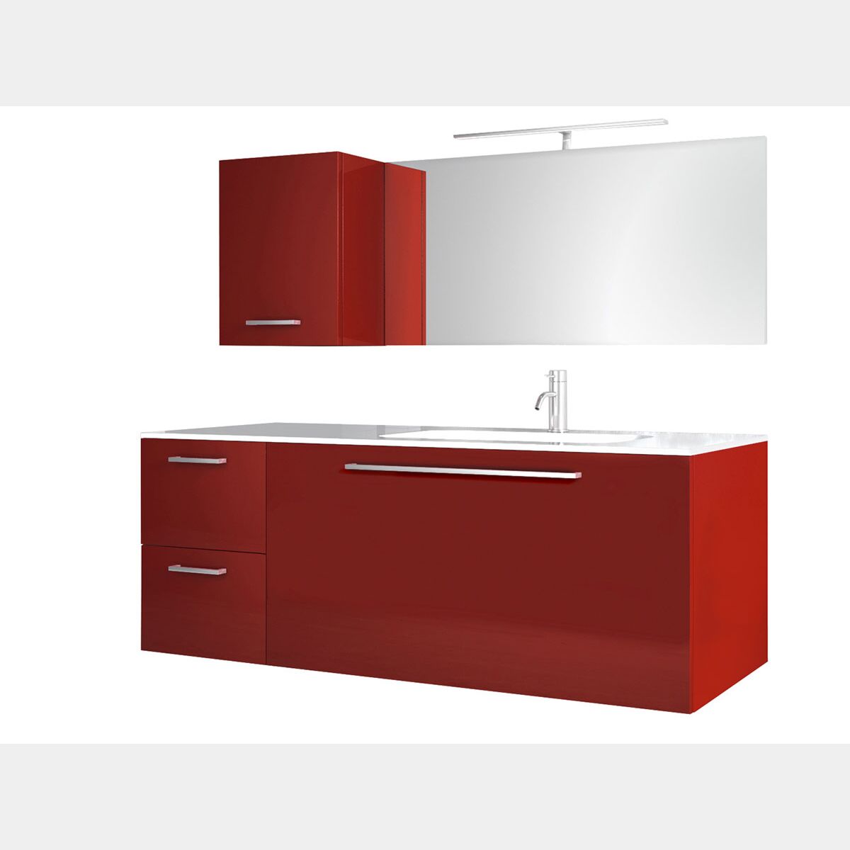 Composizione da Bagno con 3 cassetti soft-close e pensile reversibile, Rosso Lucido