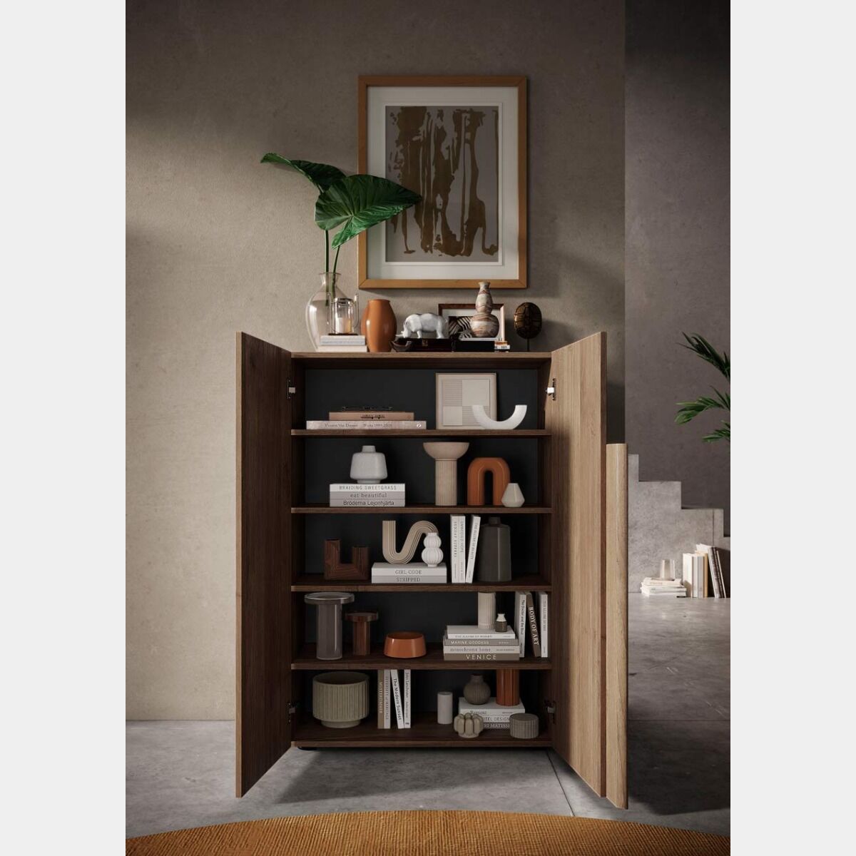 -La madia alta nella finitura Mercure è apprezzata per l'estrema adattabilità, così da potersi integrare perfettamente in molteplici idee di stile e design dal più moderno al più contemporaneo.