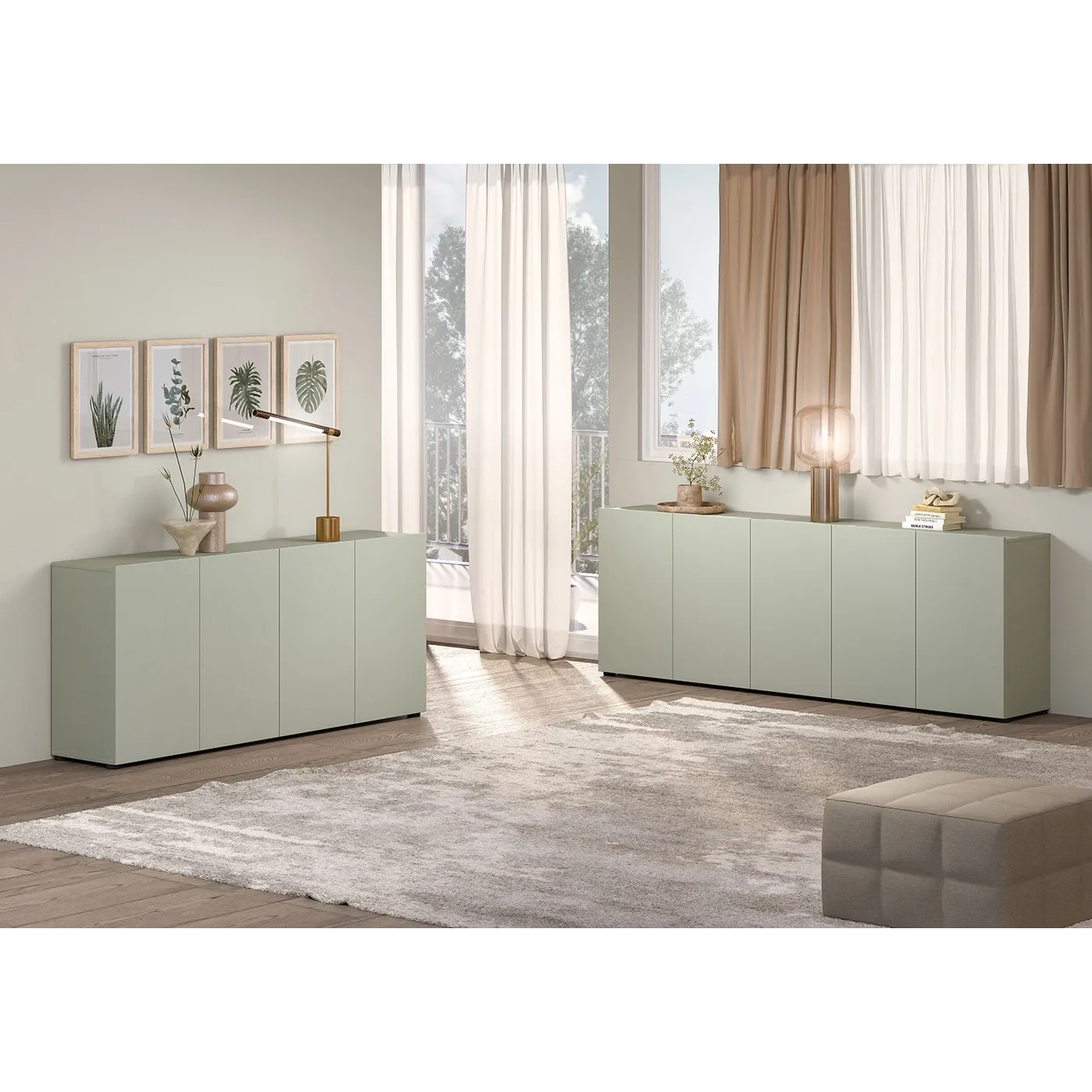 Composizione da soggiorno di 2 madie grandi, color Verde salvia