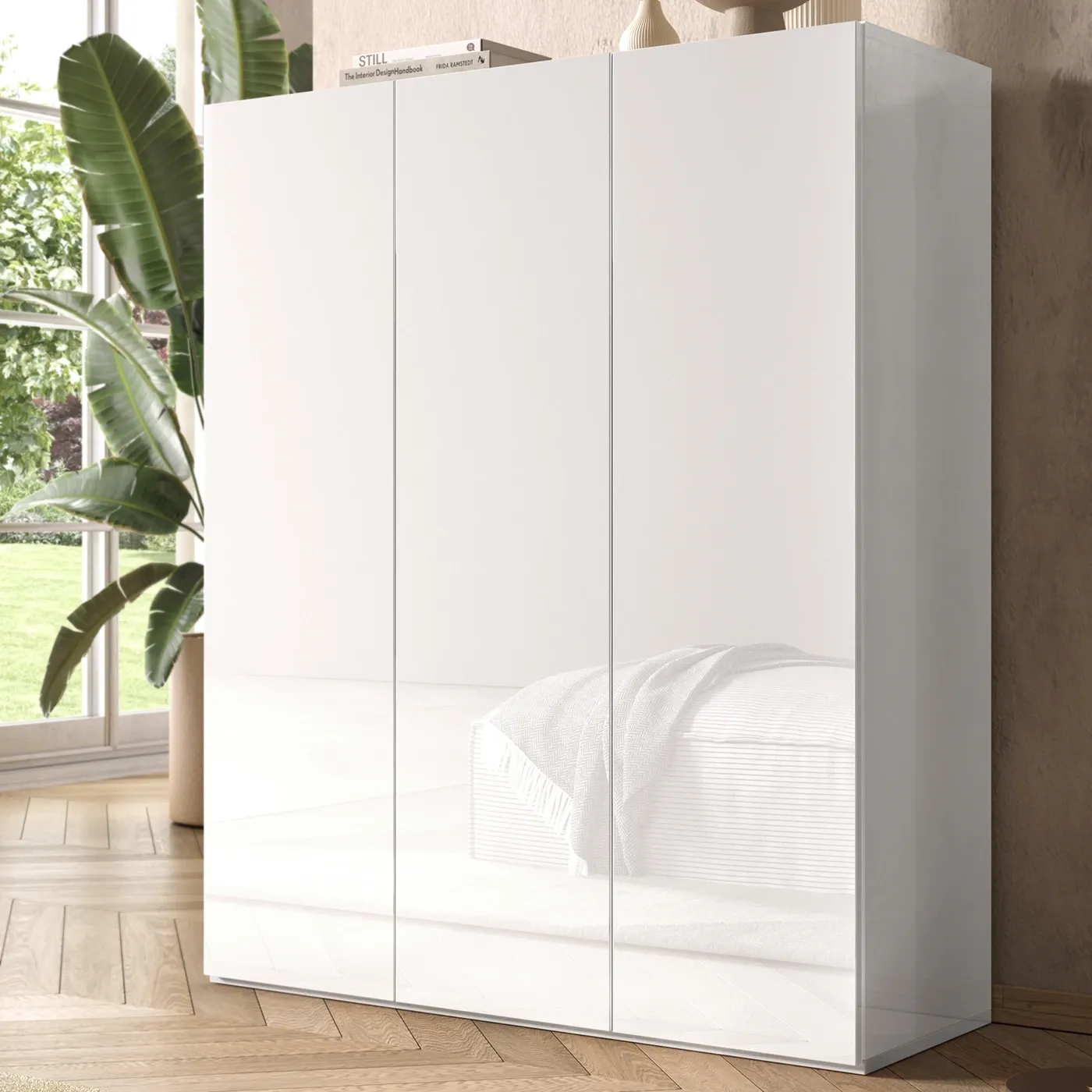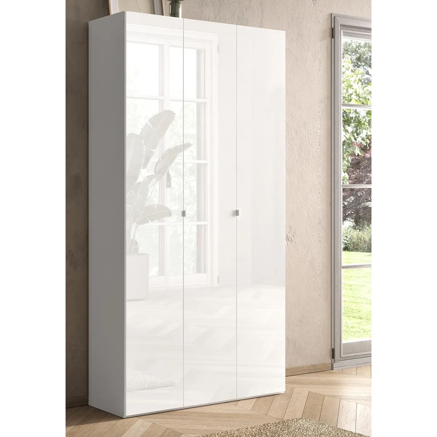 Composizione di 2 scarpiere, a 3 ante, Bianco laccato lucido