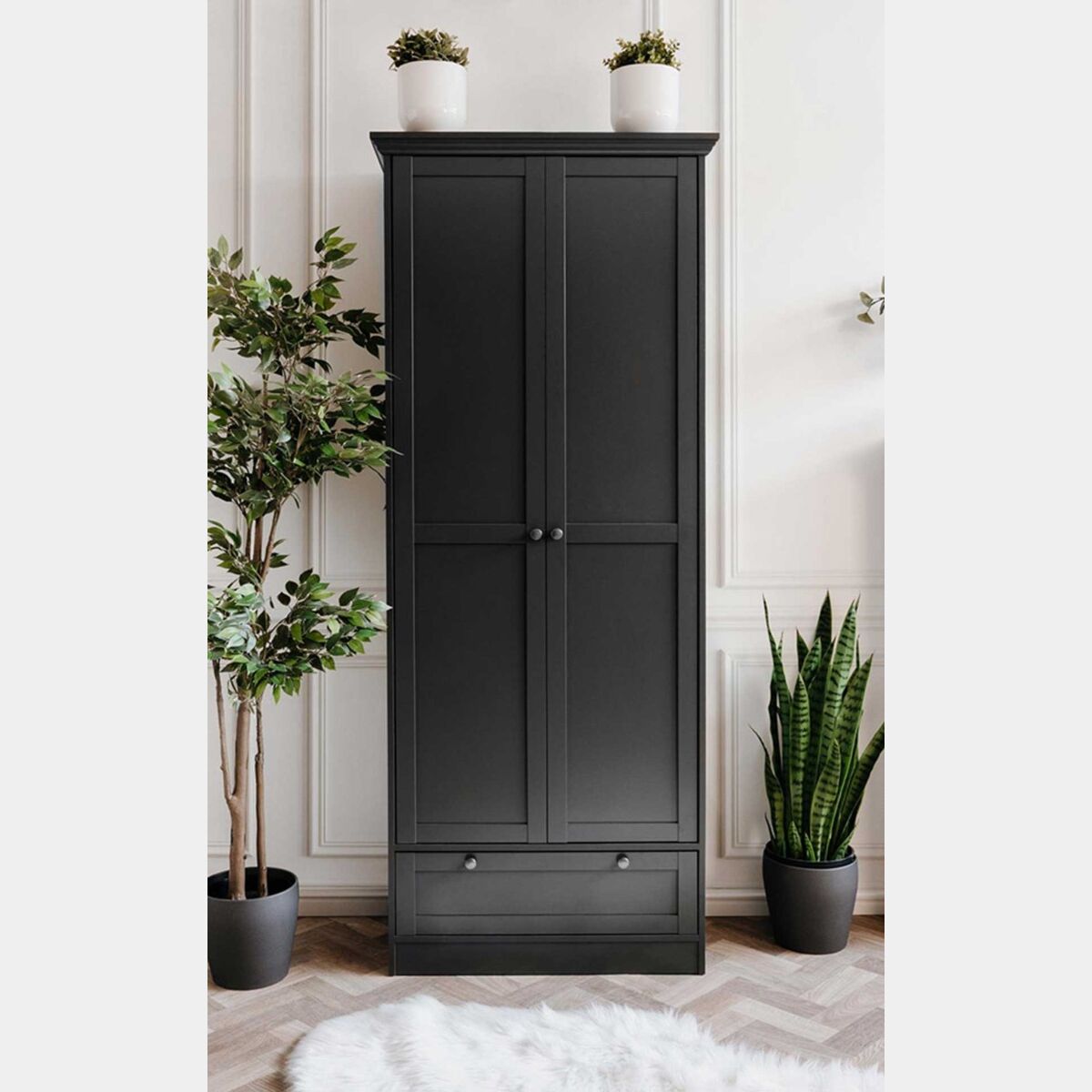 Il punto di forza di questa composizione è l'armadio guardaroba che si presta ad essere utile grazie al vano che permette di contenere i nostri amati cappotti soddisfacendo qualsiasi esigenza e necessità.
