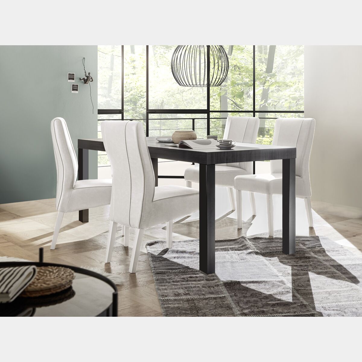 La sala da pranzo di design, in finitura Nero Frassinato è composta da: 1 tavolo, 1 madia contenitore e madia 4 ante.
