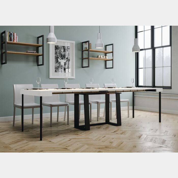 Consolle allungabile di design, Bianco frassino con telaio in metallo