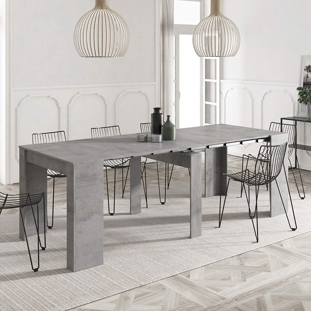 Tavolo allungabile, moderno e di design, in finitura Beton. Questo tavolo, unisce l'eleganza del design e il fascino moderno offrendo così un risultato estremamente chic e rendendo la vostra zona living di tendenza.La consolle aperta al massimo arriva 2 metri e 37 cm, ospitendo 10 posti tavola.