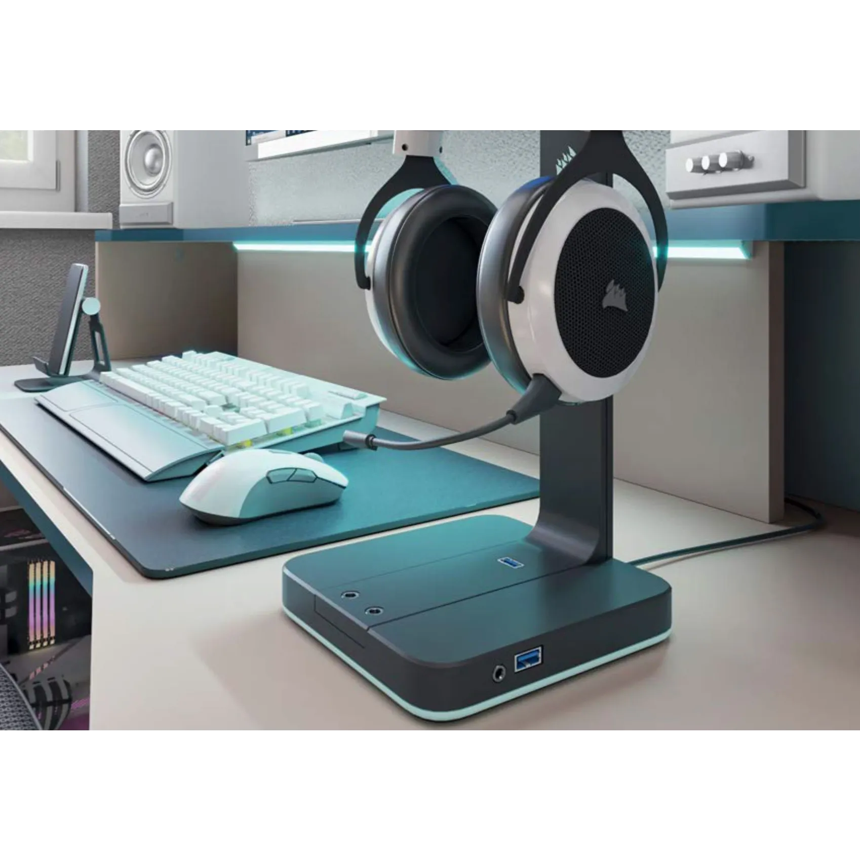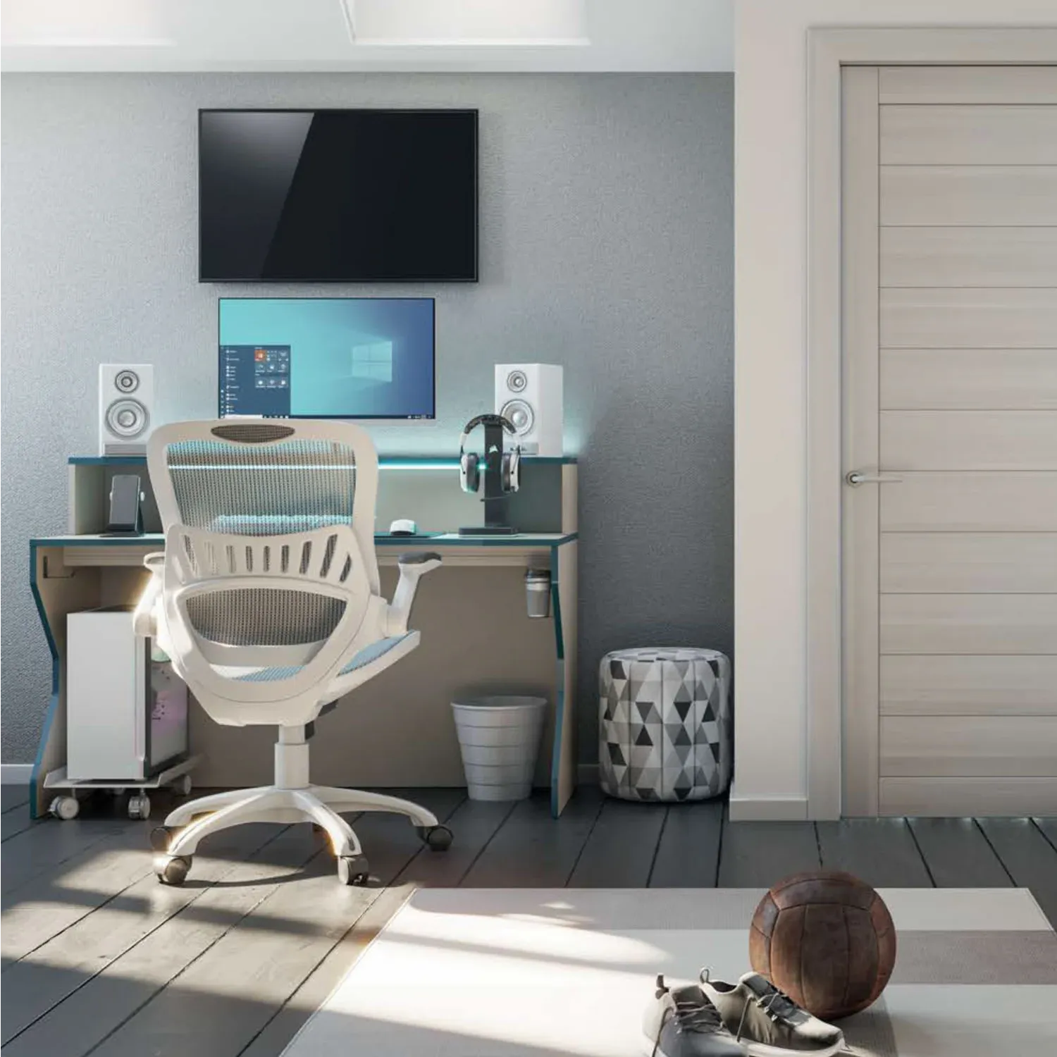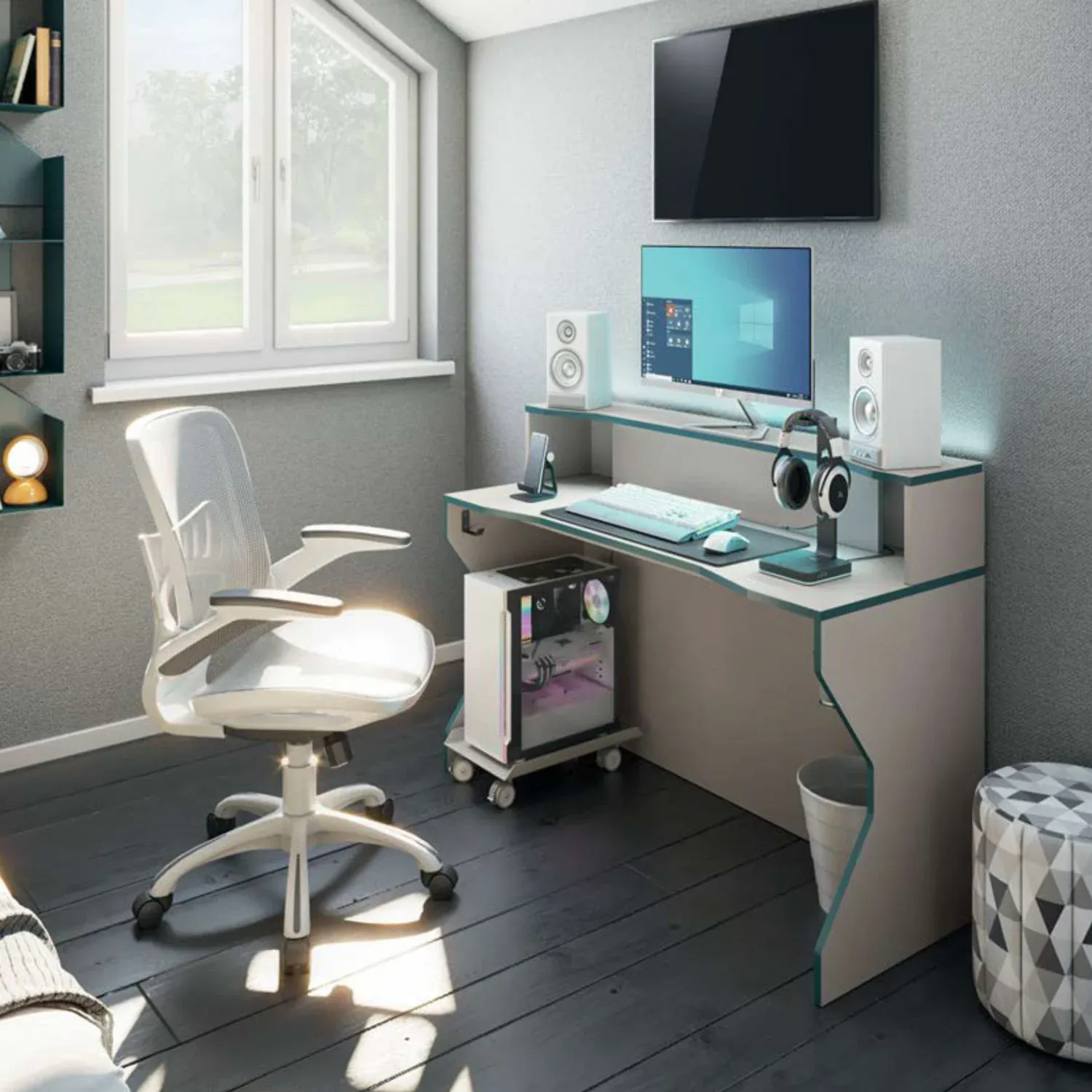 Consolle da gaming per camerette, finitura Bianco luce e Blu mosaico
