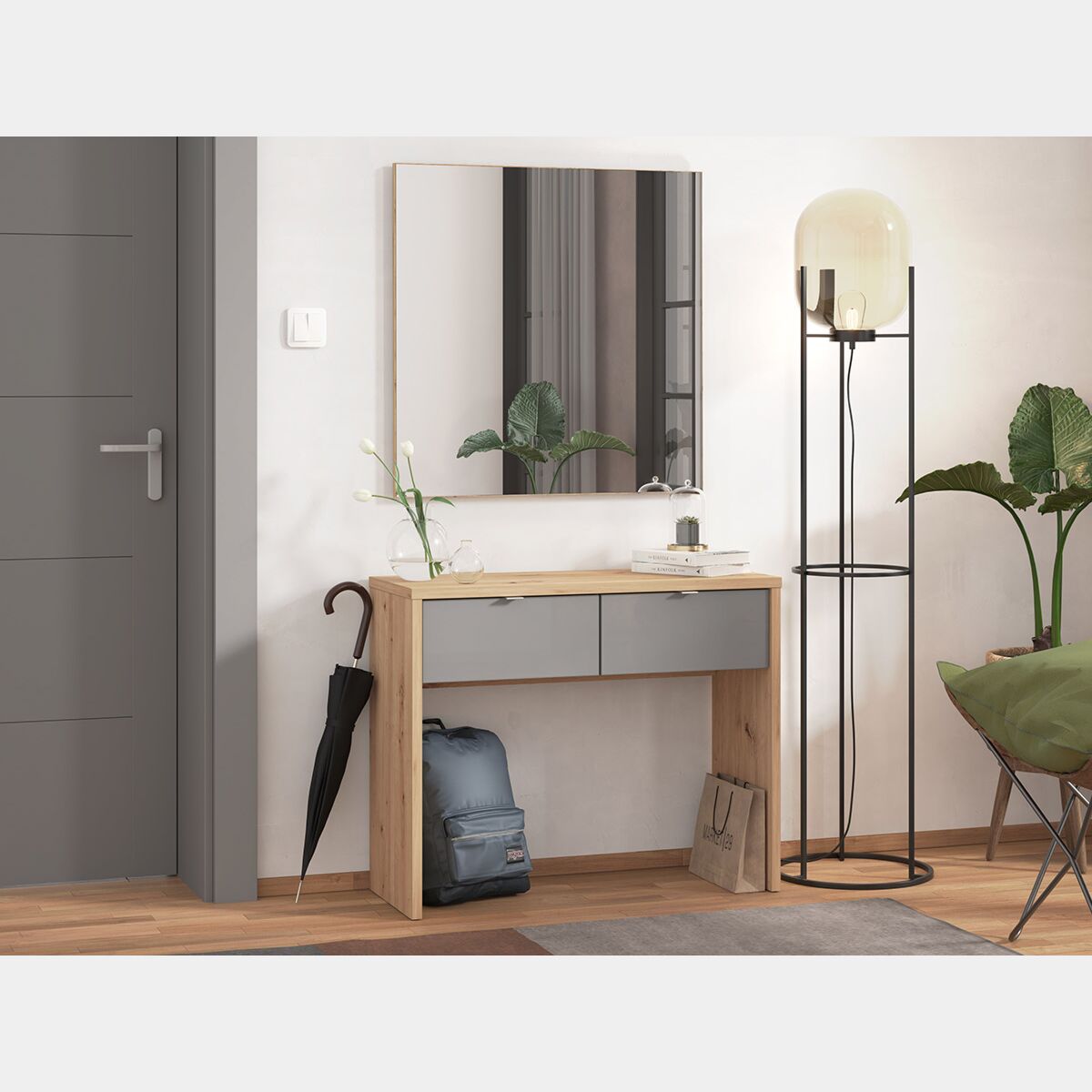Consolle ingresso a 2 cassetti, finitura Grigio e Rovere