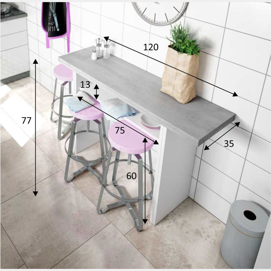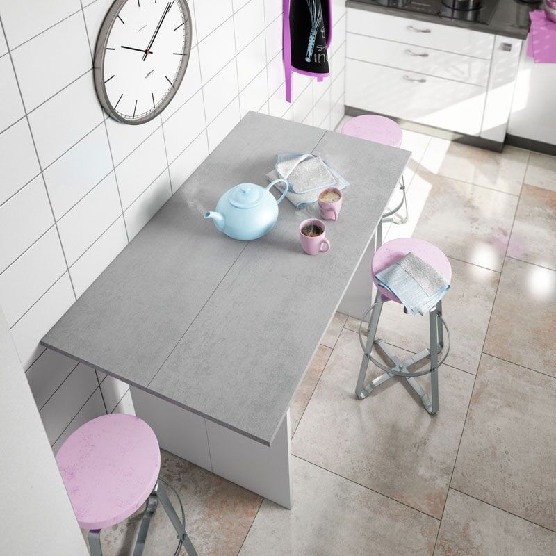 Scrivania Consolle allungabile, moderna e di design, linee pulite, ampie e curate superfici, in finitura Bianco Artik e betonMisure da chiusa: L.120 H.77 P.35Misure da aperta: L.120 H.75 P.70
