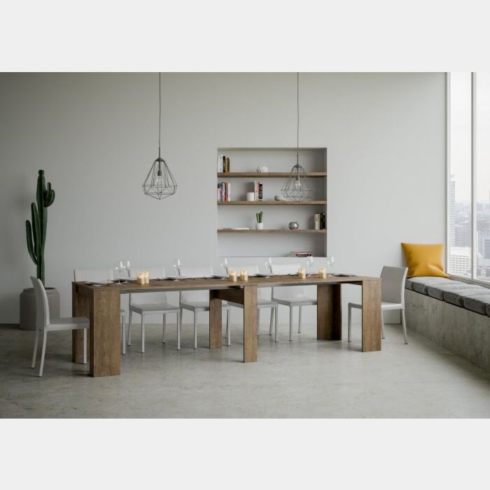 Piccola e compatta da chiusa, la consolle si trasforma in poche mosse in un pratico e spazioso tavolo da pranzo da 3,08 metri per le occasioni più importanti.