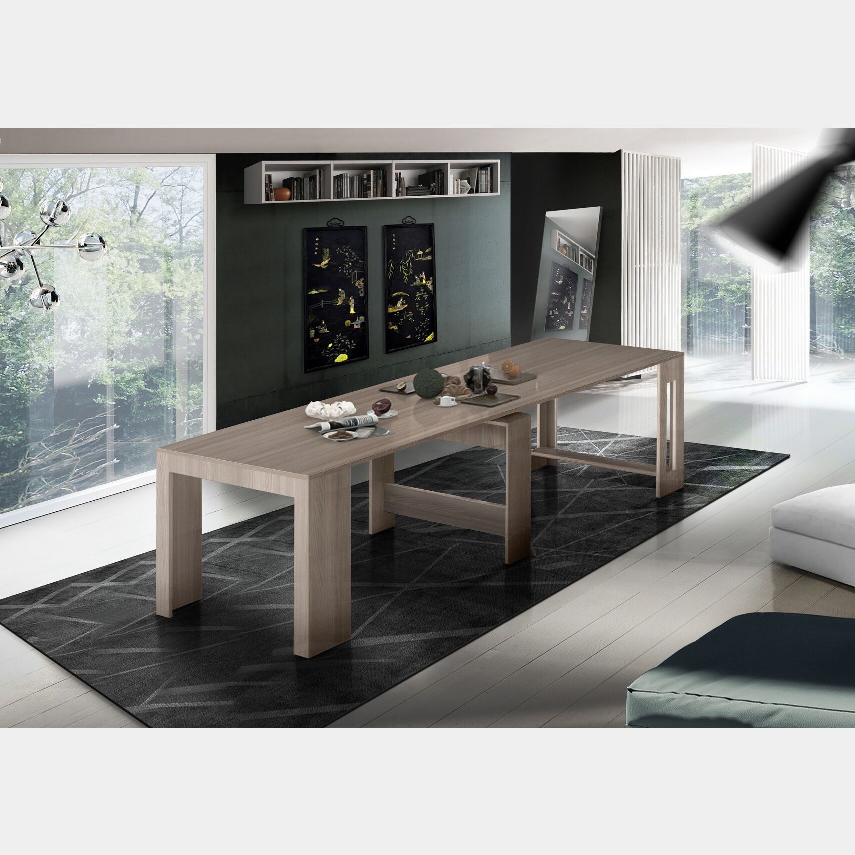 La consolle infatti è dotata di diverse allunghe per consenitre una lunghezza di 3 metri da aperta, quando invece non viene utilizzata le sue dimensioni sono di appena 90 cm. Le allunghe quando non vengono utilizzate sono riposte all'interno della consolle.