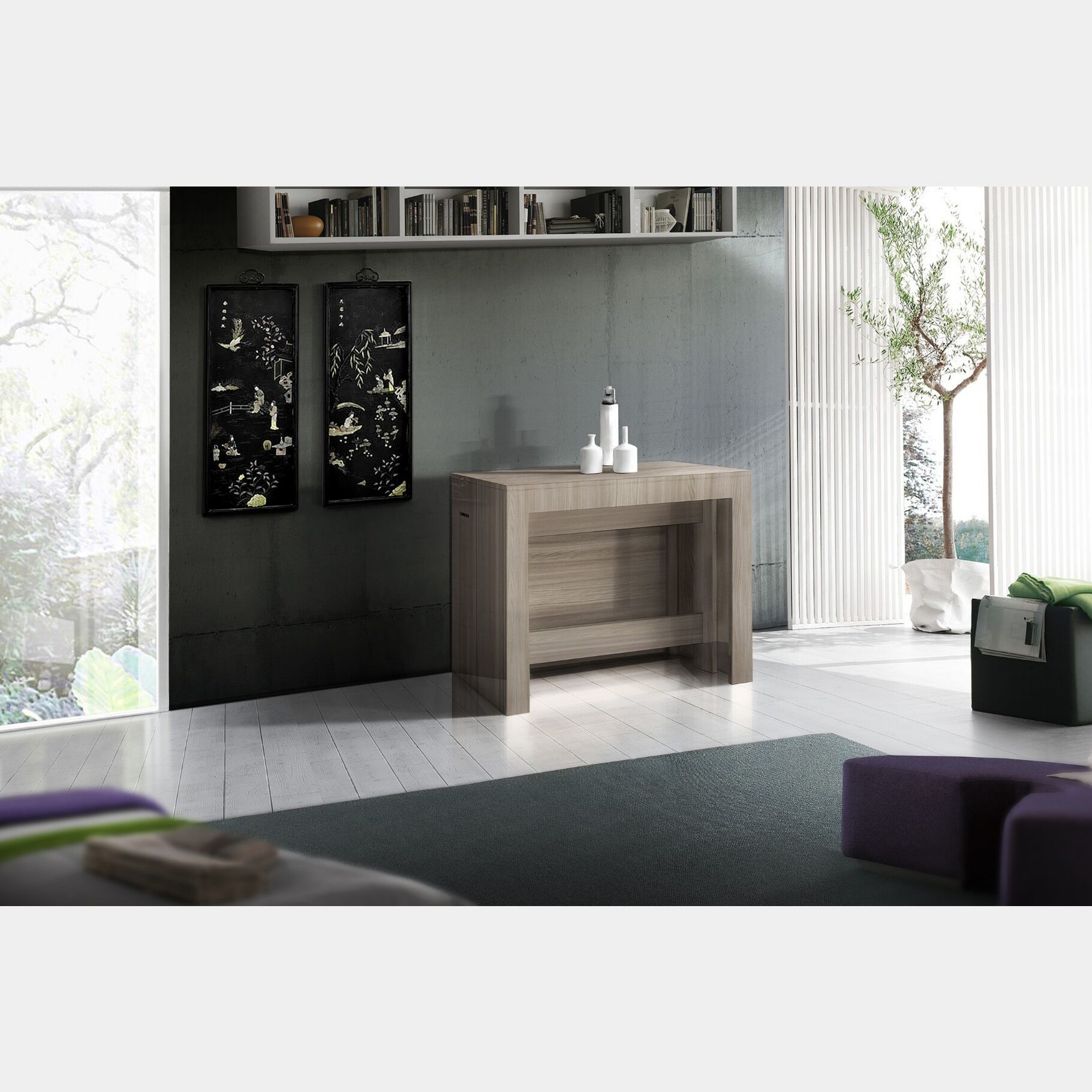 La consolle presenta una finitura in Olmo, colore di tendenza pensato per ambienti nuovi e moderni, è disponibile anche nella versione Cemento, Ardesia, Bianco larice, Pero e Bianco lucido.