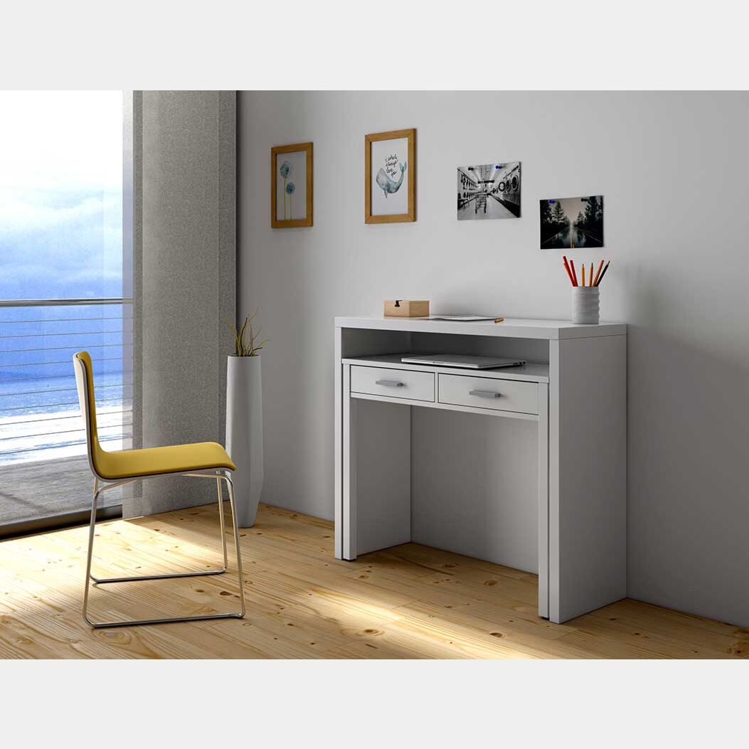Scrivania Consolle allungabile, moderno e di design, linee pulite, ampie e curate superfici, in finitura bianco artik opaco.