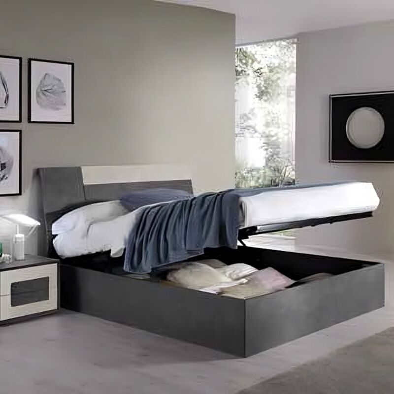 Contenitore letto matrimoniale con pannello curvo bicolor