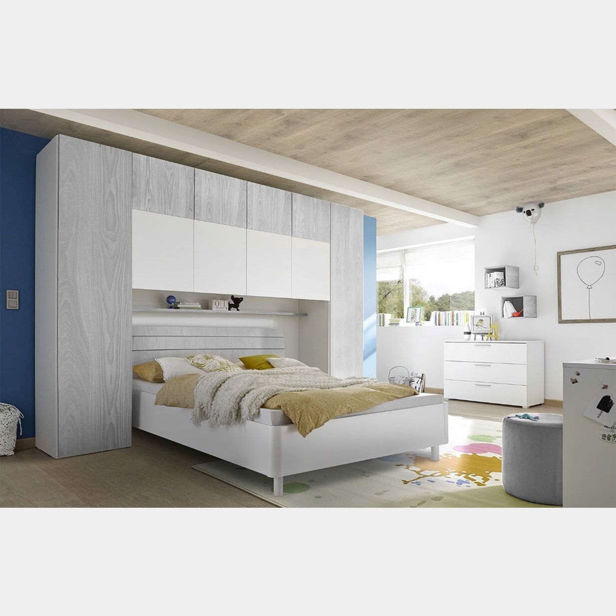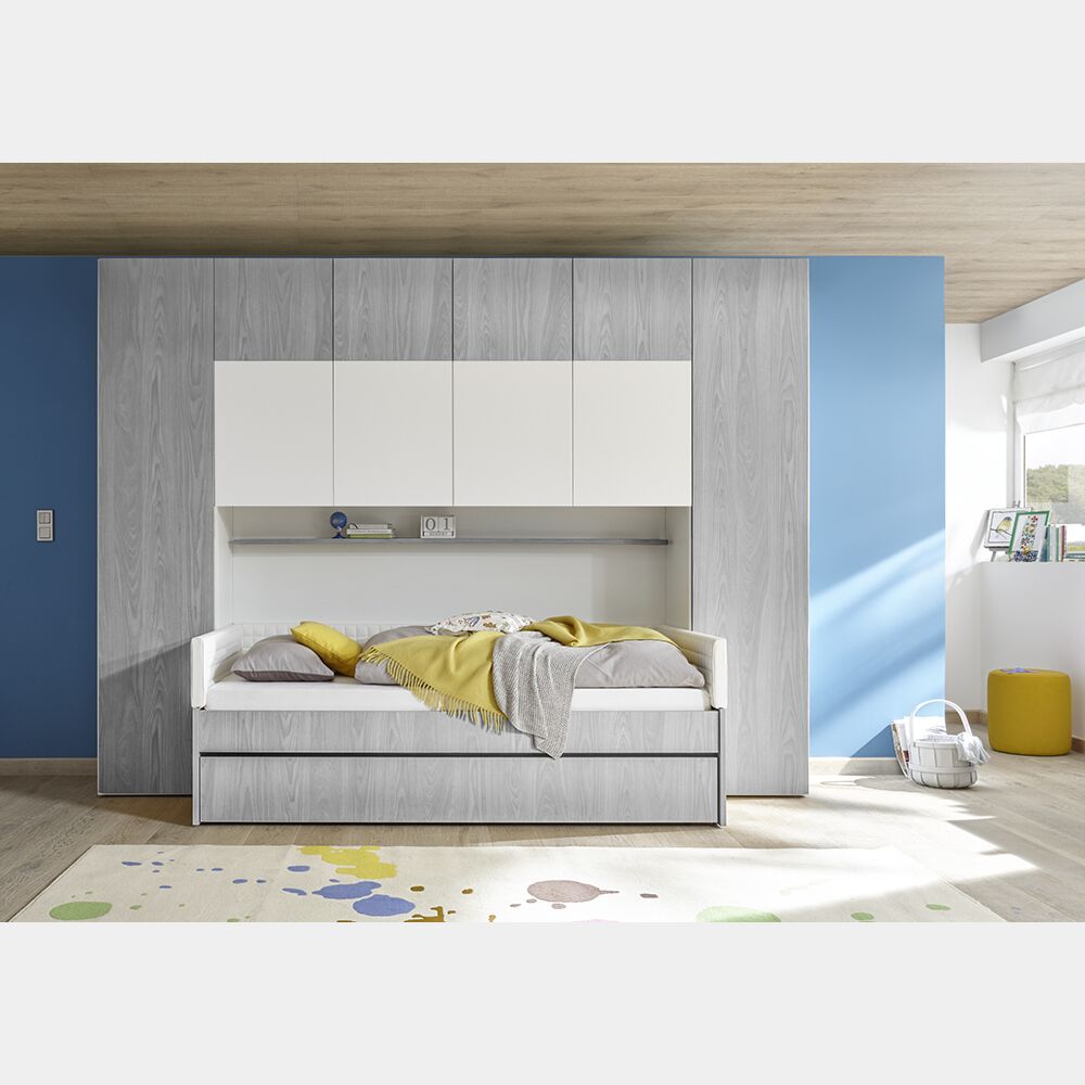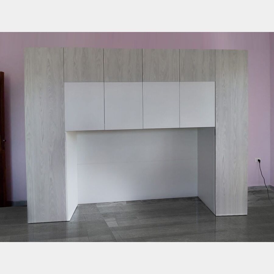 Conveniente Armadio a ponte a 6 ante battenti bianco opaco e grigio