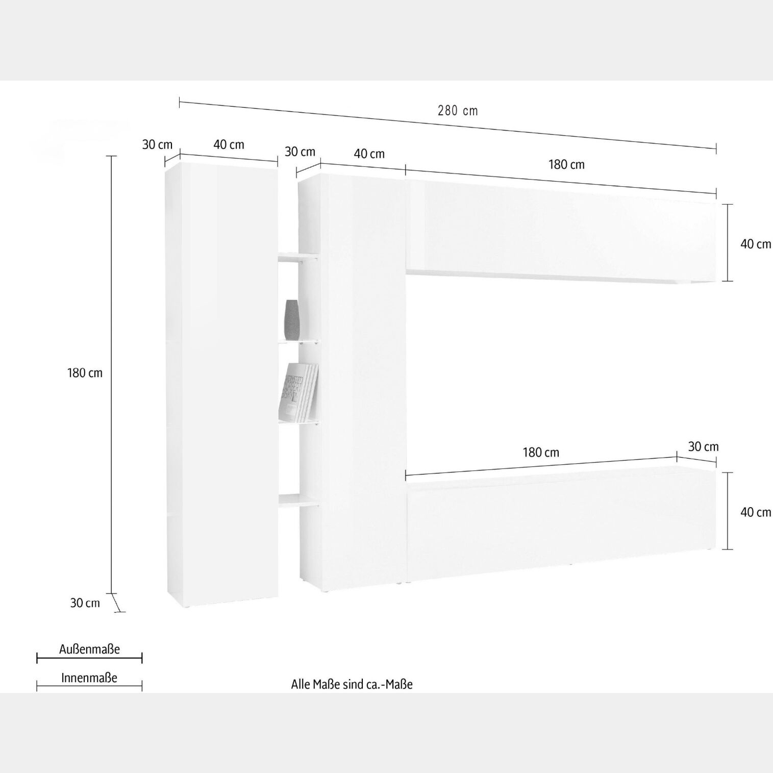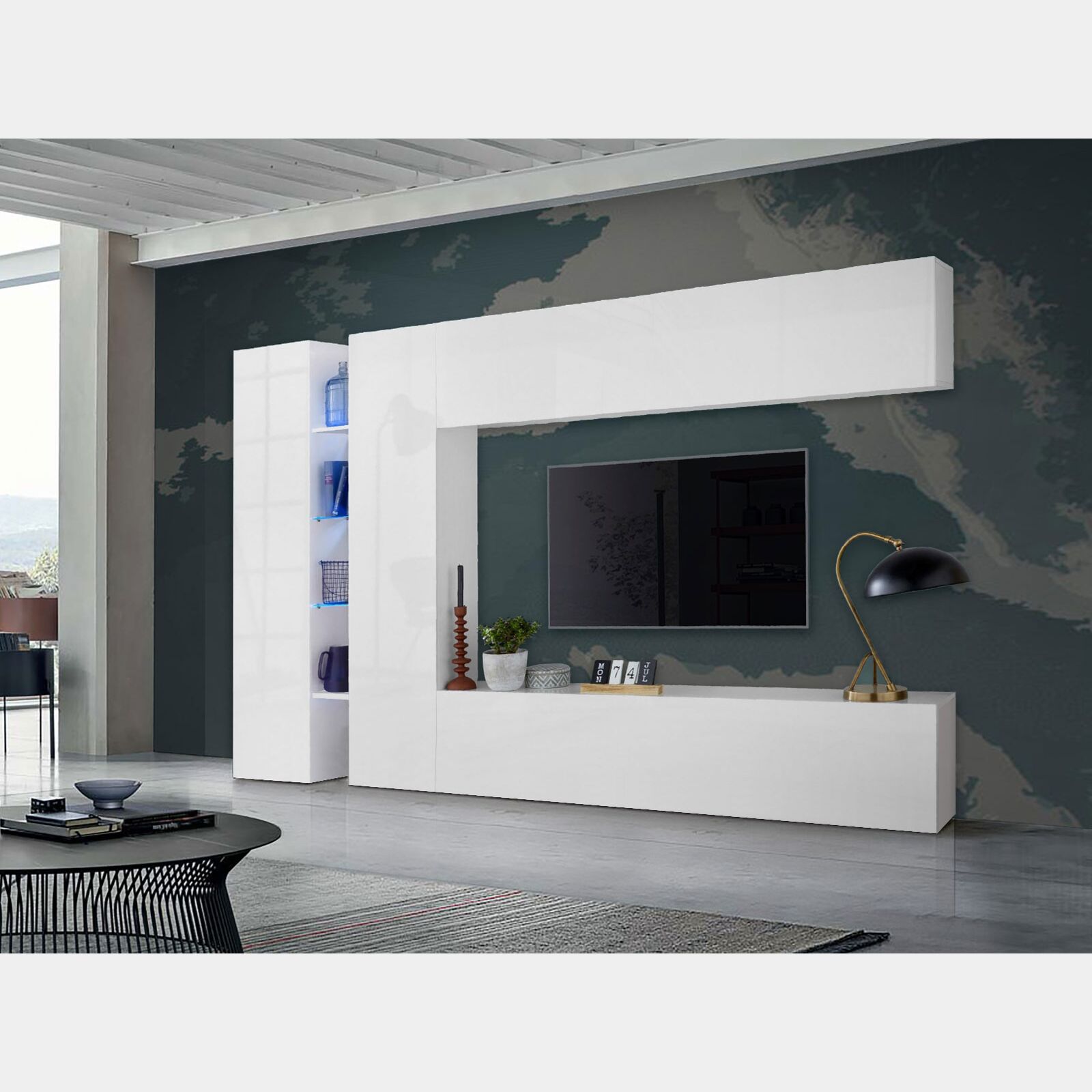 La parete attrezzata Bianco lucido è una composizione innovativa, un modo originale per organizzare gli spazi di casa e adeguarli ai propri gusti e alle proprie esigenze.