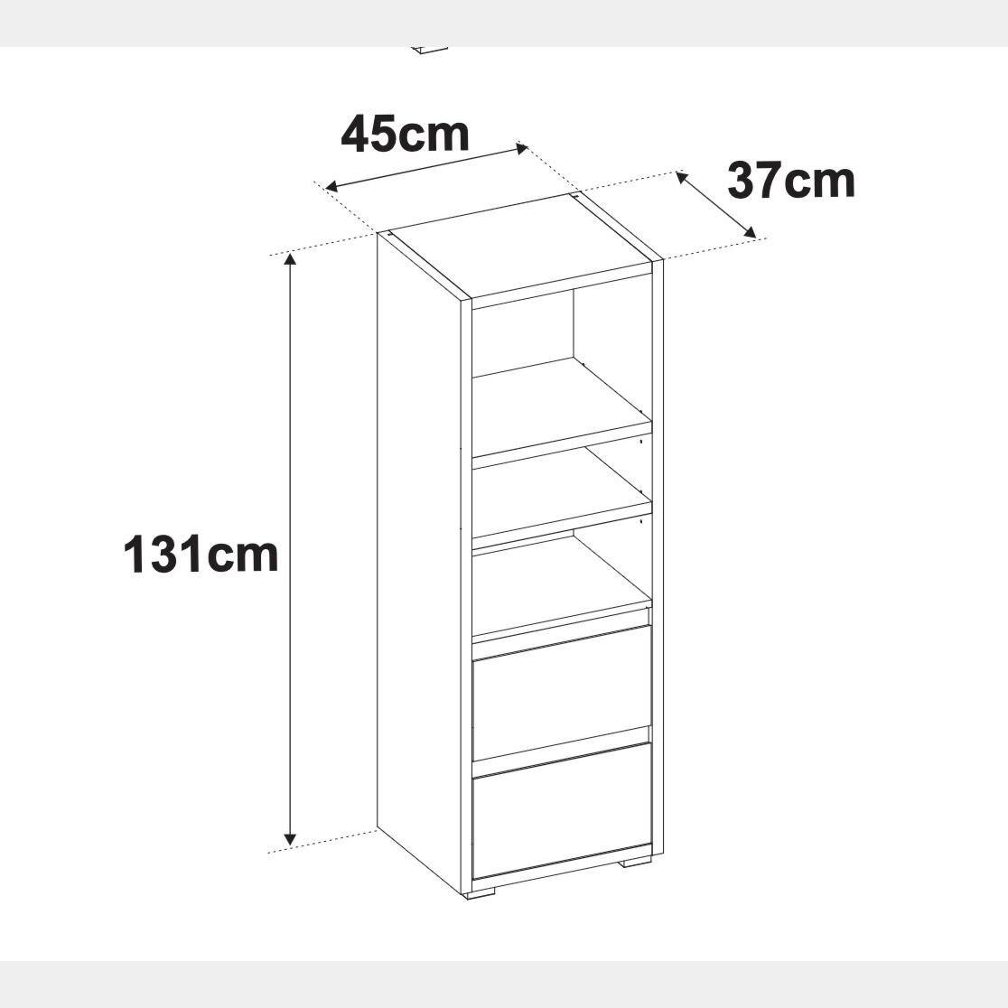 Questa spaziosa libreria finitura Bianco opaco si compone di 2 cassetti con guide scorrevoli, e 2 ripiani dove potrai mettere in mostra i tuoi libri e soprammobili.