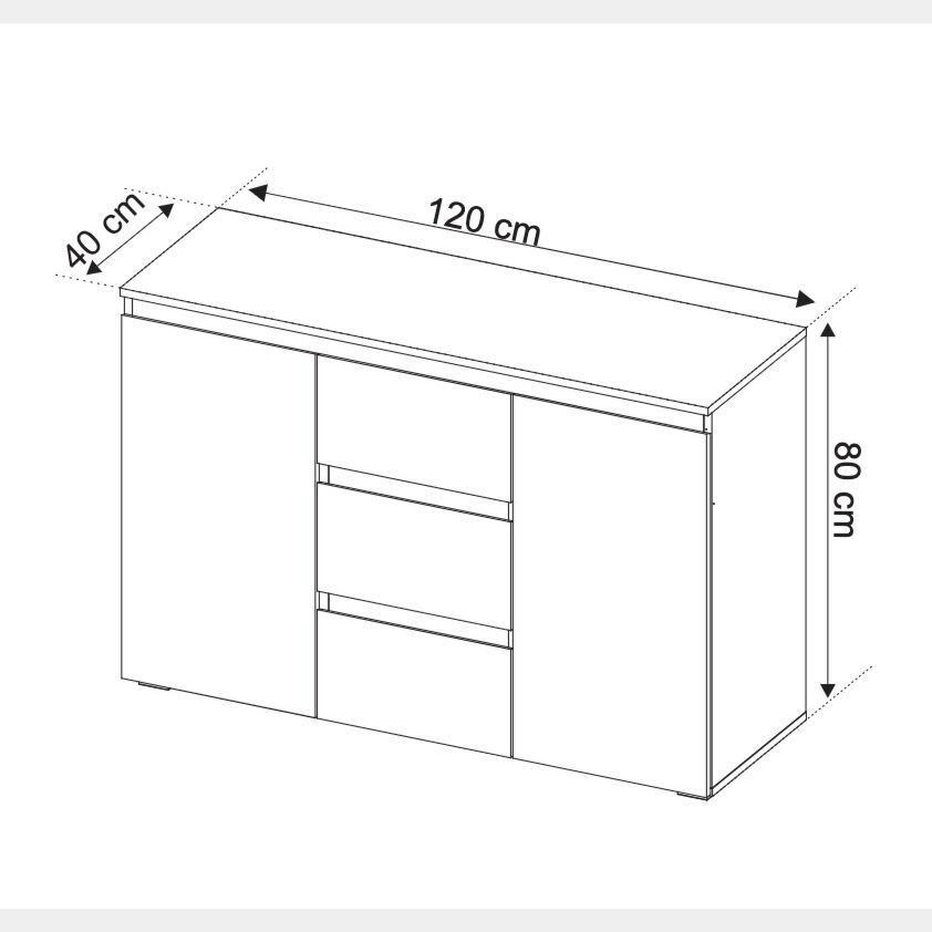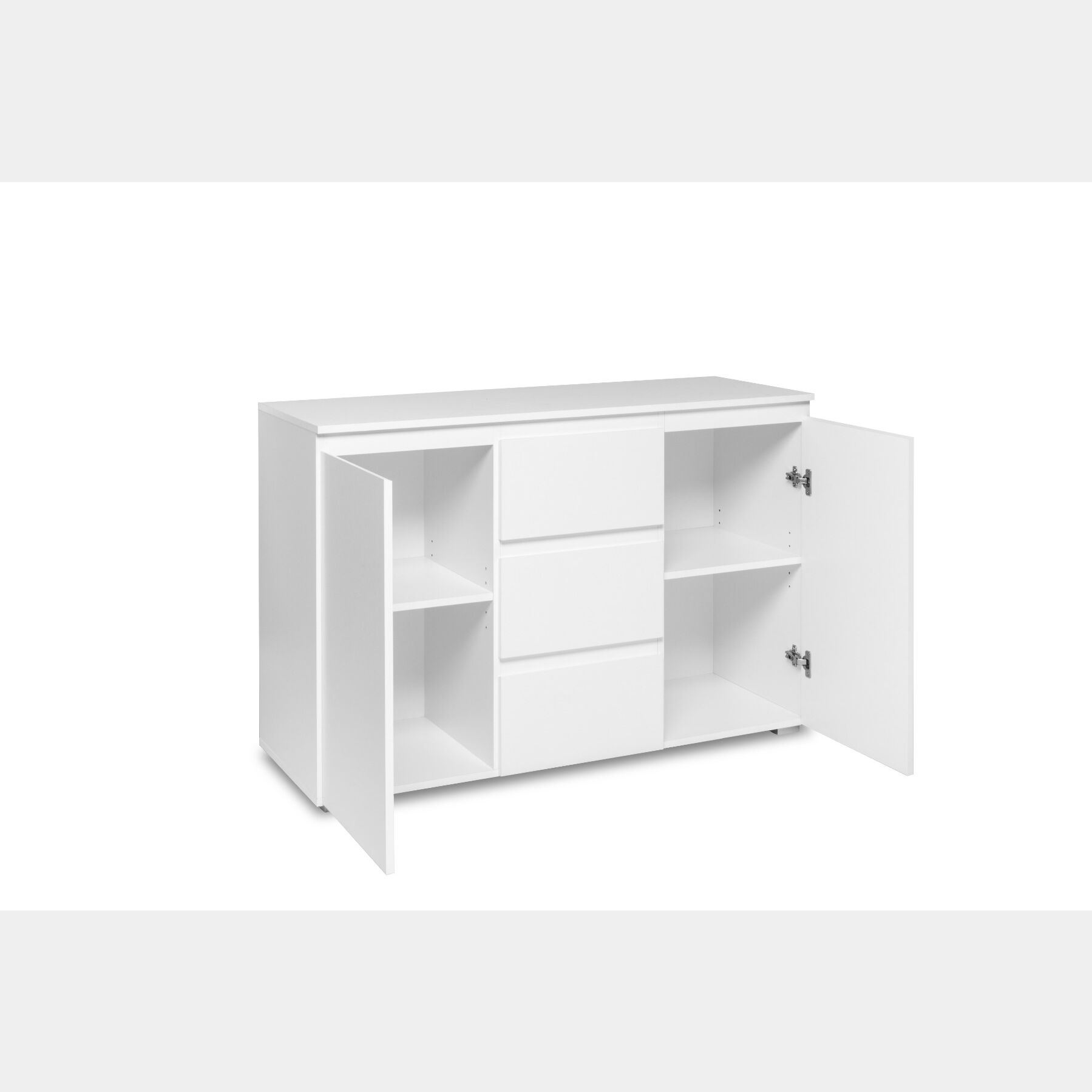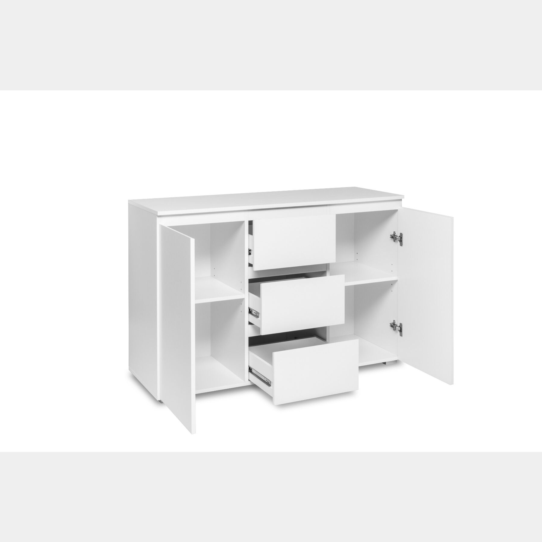 Capiente Credenza moderna 2 ante e 3 cassetti finitura Bianco opaco.