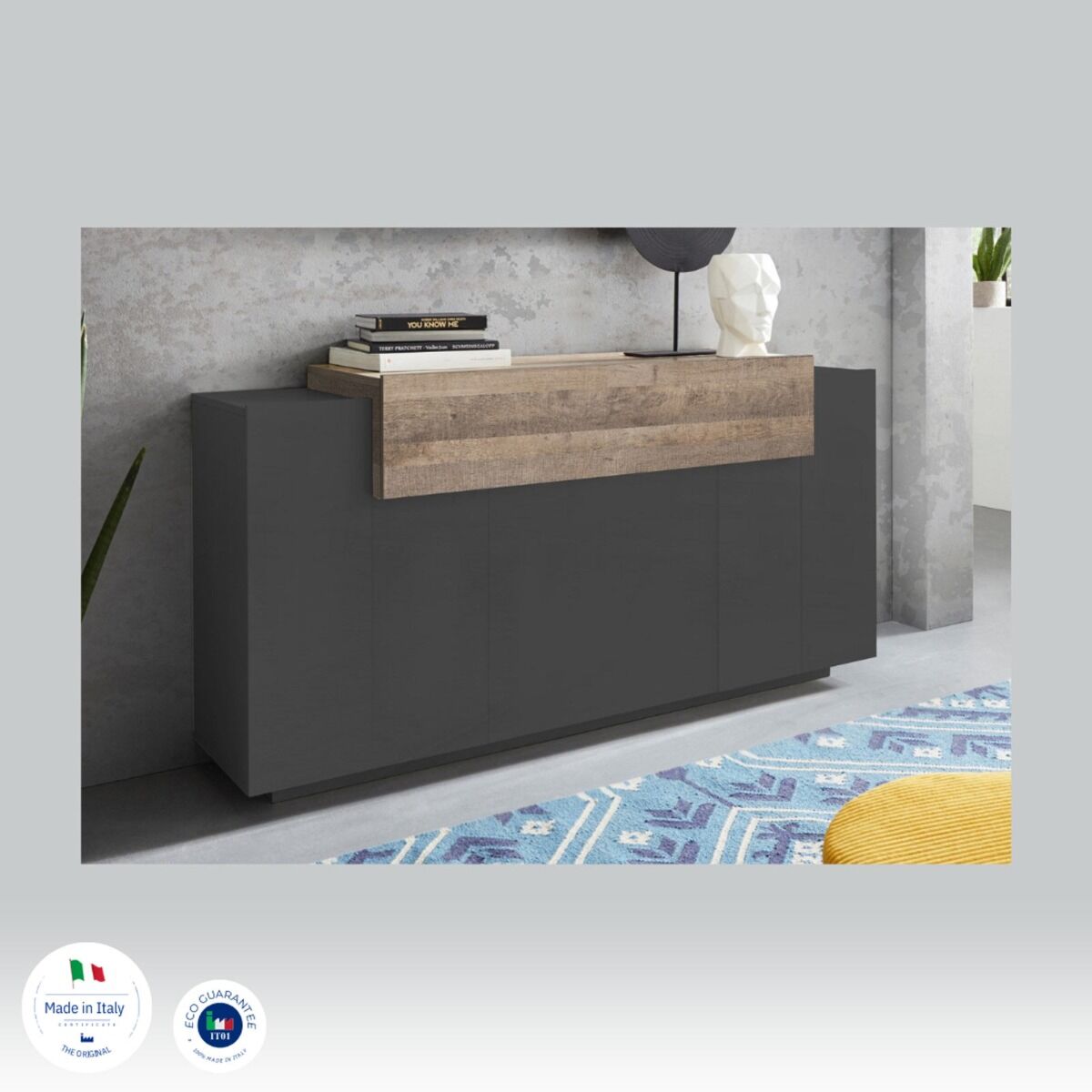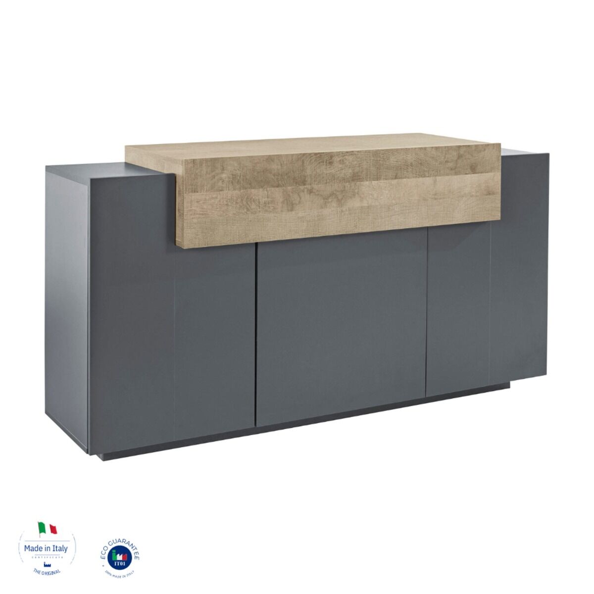 Conveniente Madia con 3 ante e una ribalta in finitura Ardesia e Oak
