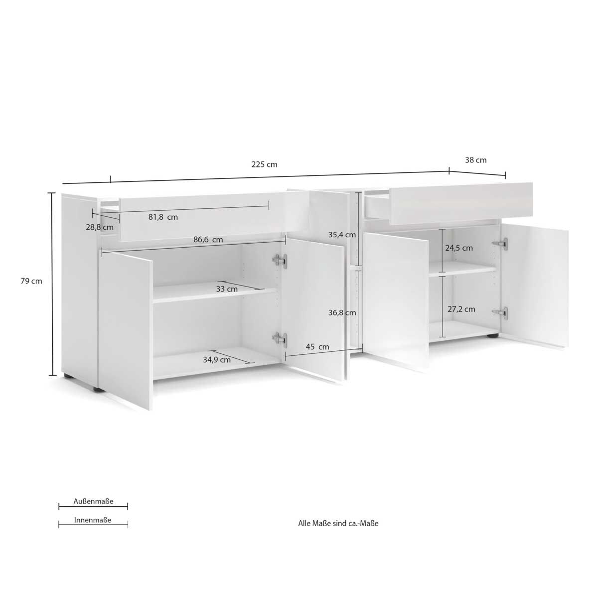 Coveniente e spaziosa Credenza di design composta da 5 ante e 2 cassetti utilizzabile come mobile da soggiorno, credenza da cucina o da ufficio.