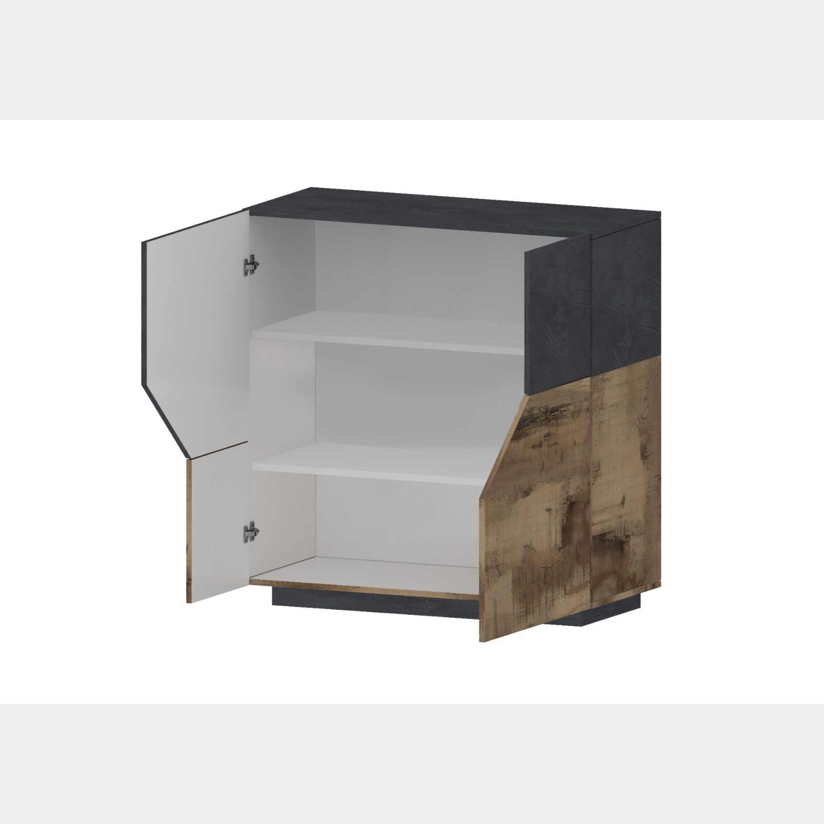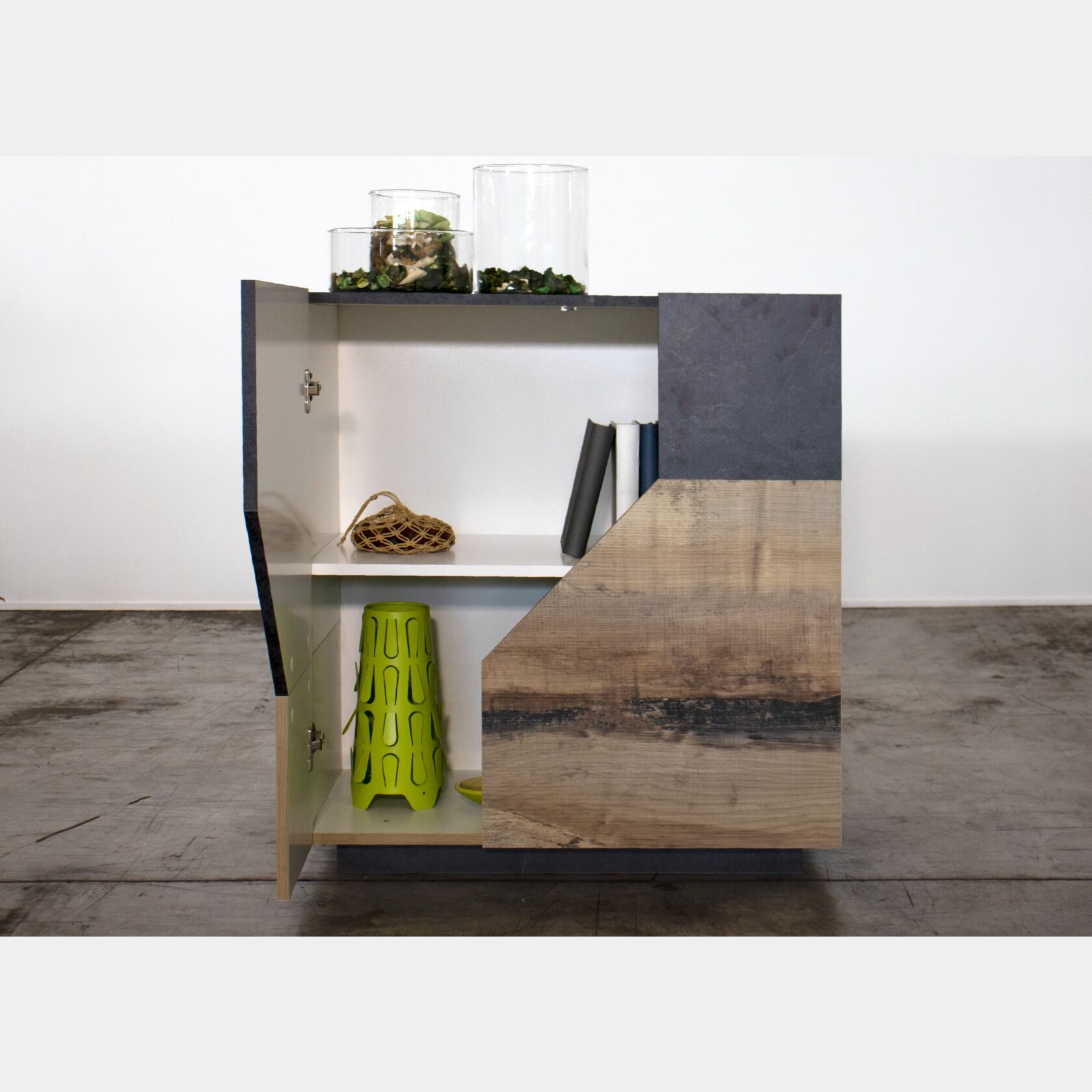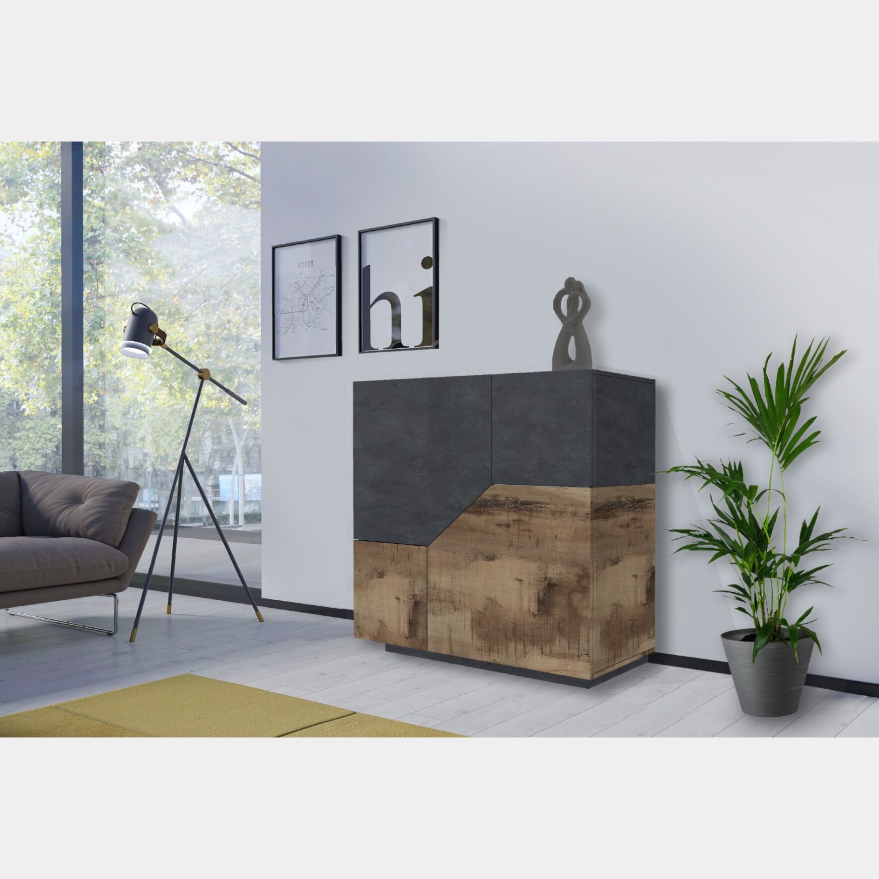 Conveniente Madia geometrica di design alta 2 ante, colore Ardesia e Pero