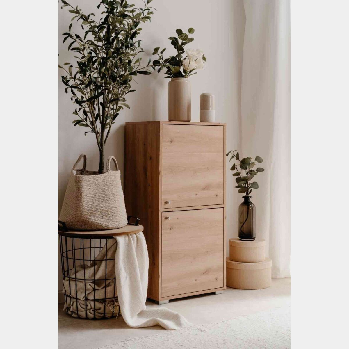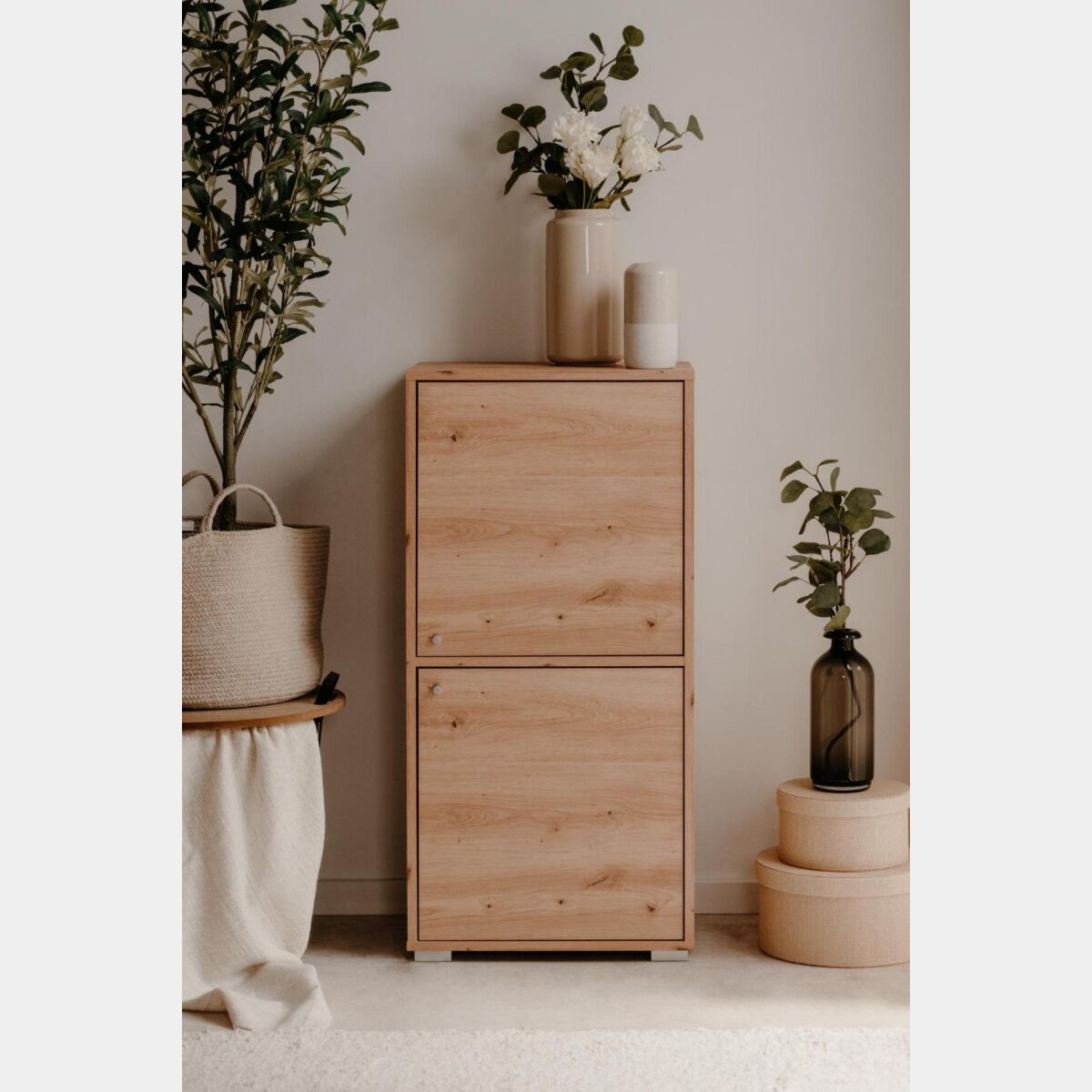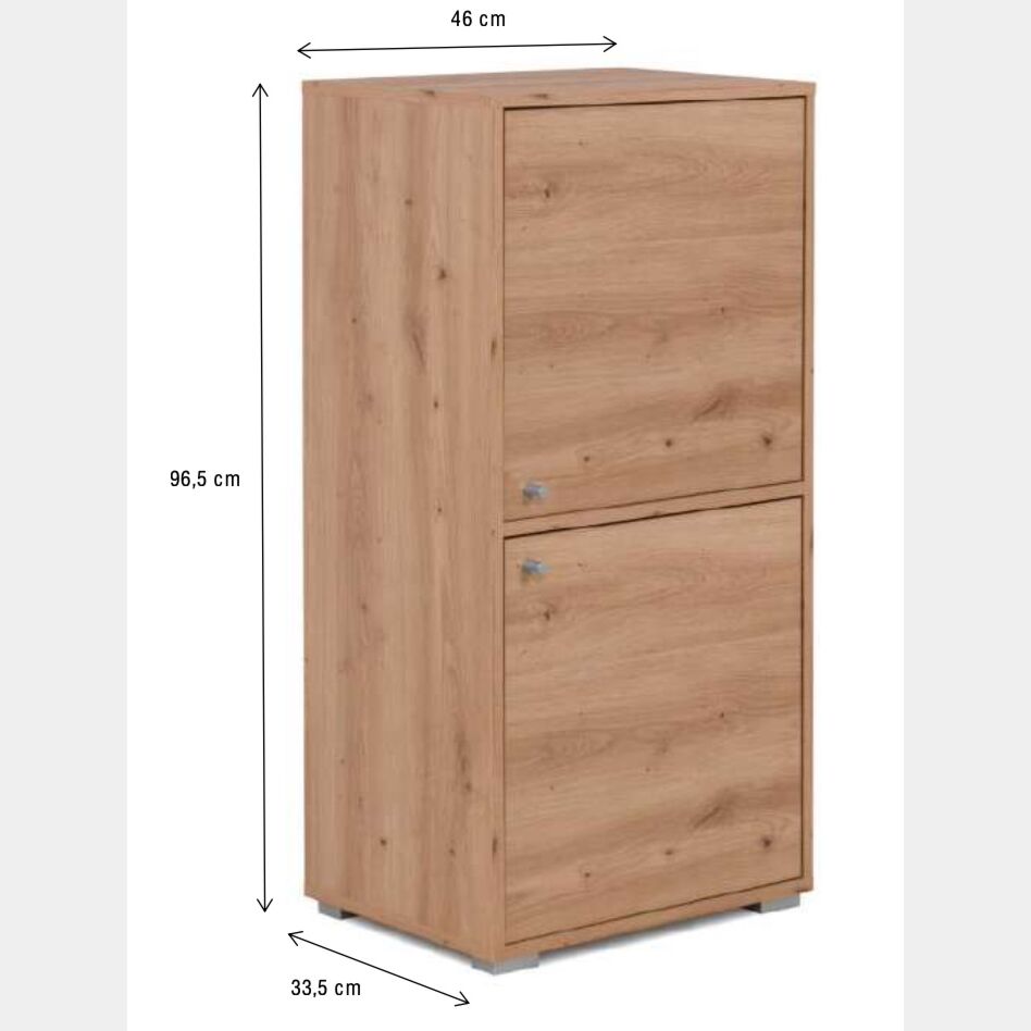 Conveniente Mobile multiuso con due ante e tre ripiani, Rovere Oak