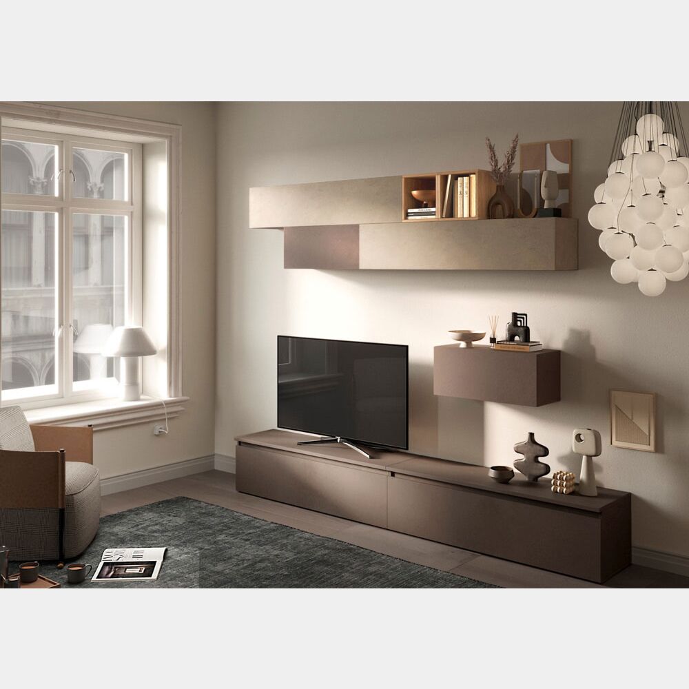 Parete attrezzata 276x40x190 h cm, Argilla, Bronzo e Cadiz, collezione Logica
