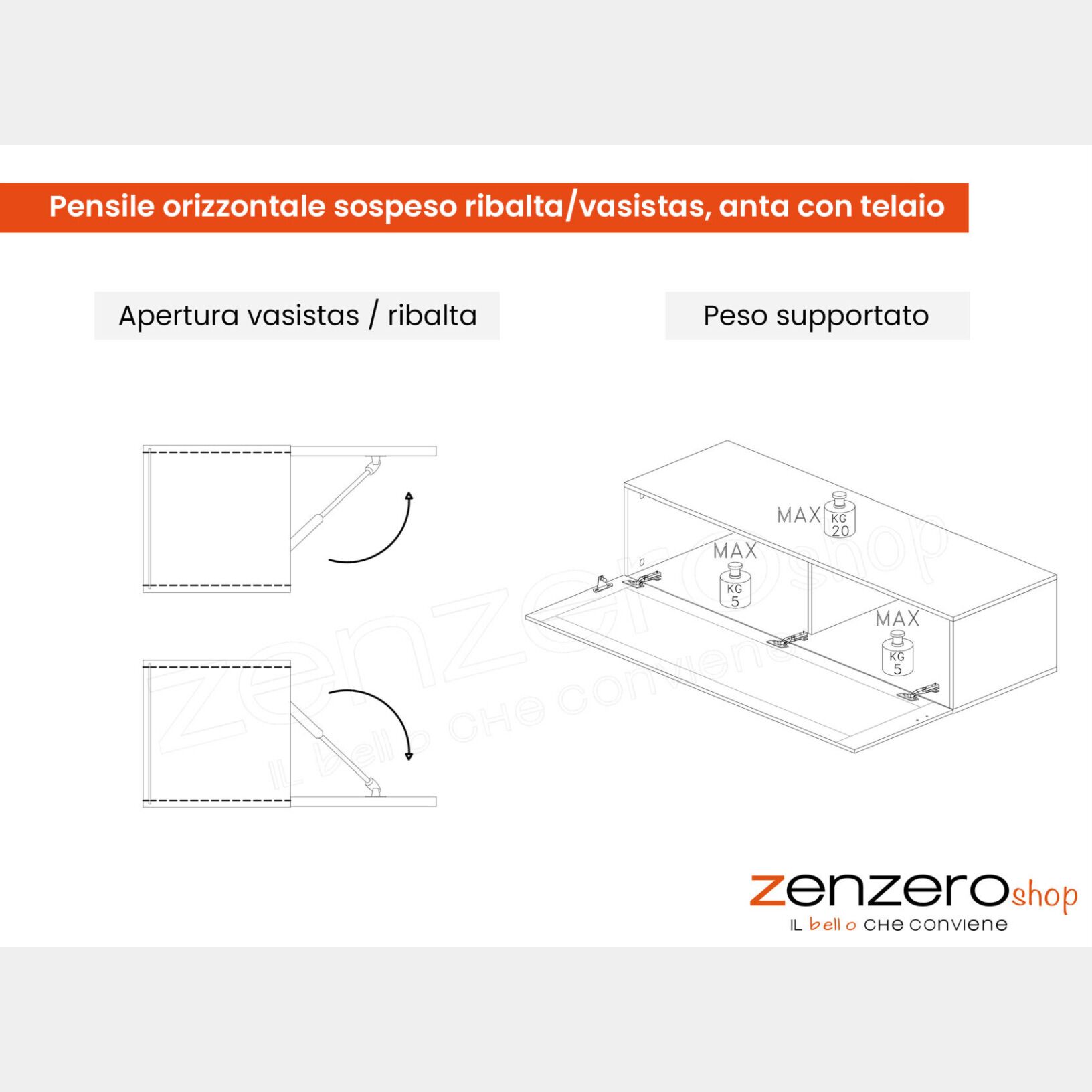 Conveniente Pensile orizzontale sospeso ribalta/vasistas, frontale con telaio