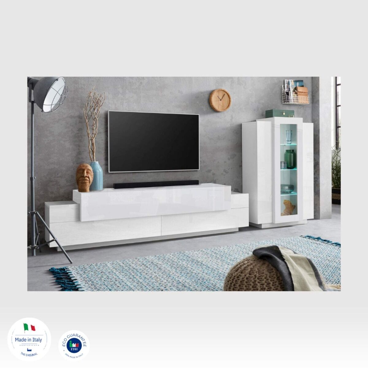 Conveniente Soggiorno elegante con vetrina e porta tv in finitura Bianca