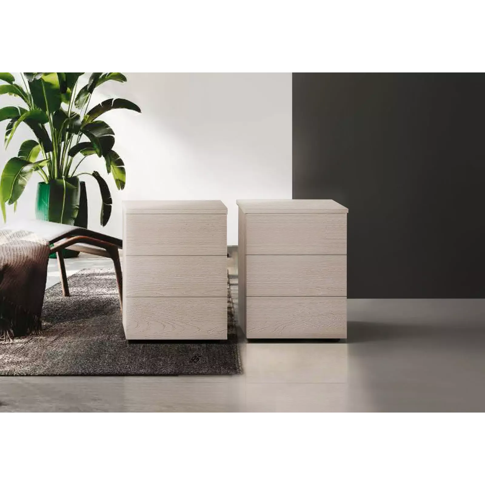 Coppia di comodini 3 cassetti Rovere gessato, design moderno