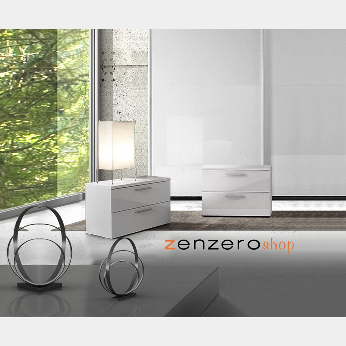 Coppia di comodini bianco lucido, maniglie serie line