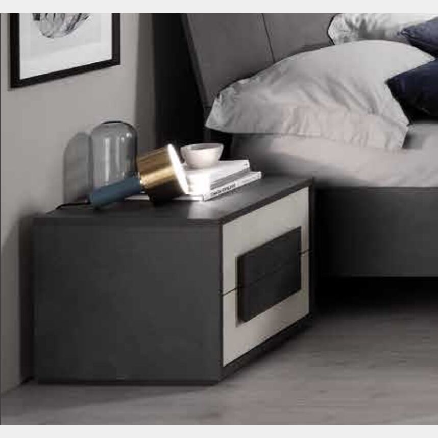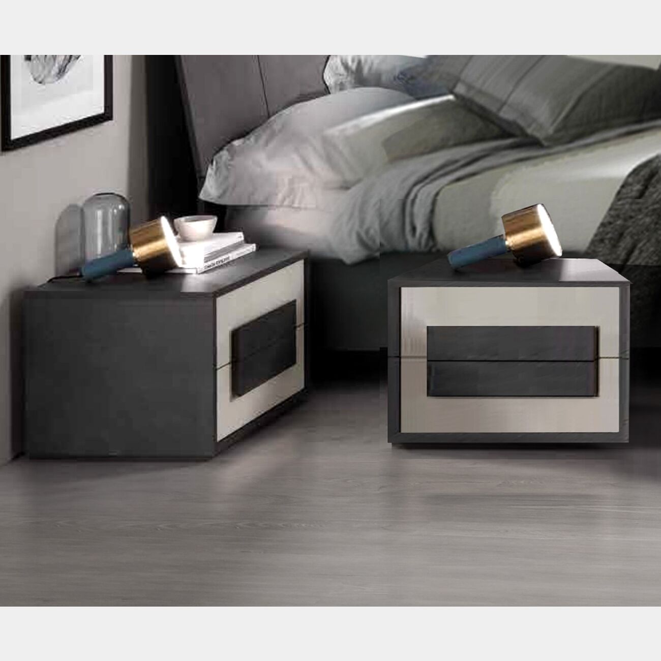 I comodini hanno 2 cassetti la scocca è di colore resina scura mentre il frontale dei cassetti è di un elegante colore resina chiaro e le maniglie riprendono il colore resina scuro. Sono adatti a qualsiasi tipo di arredamento moderno.