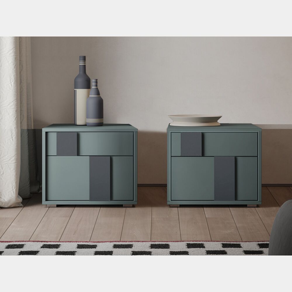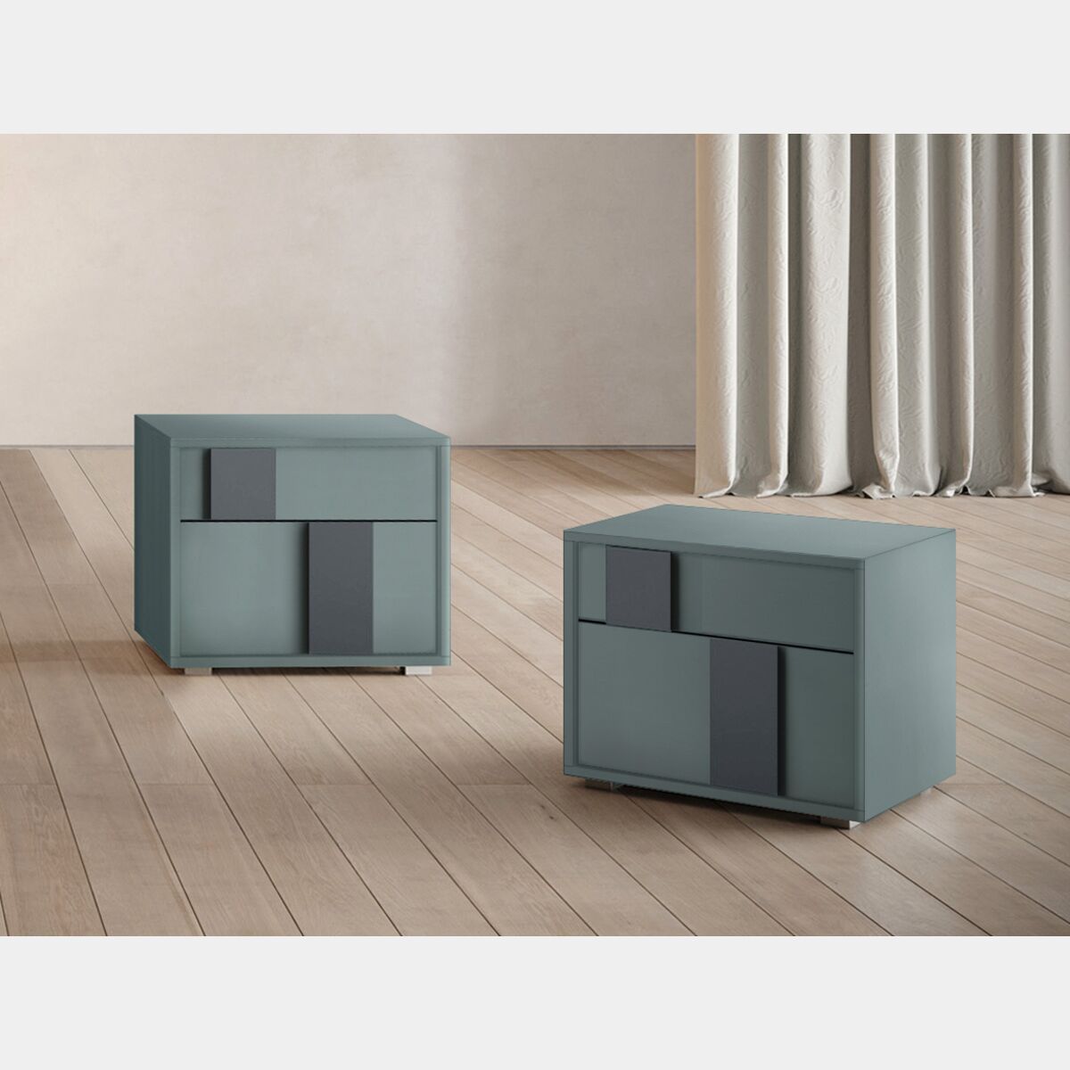I comodini bicolore finitura laccato Bristol e Piombo sono caratterizzati da cassetti con frontali bicolore che fondono la modernità a al design.