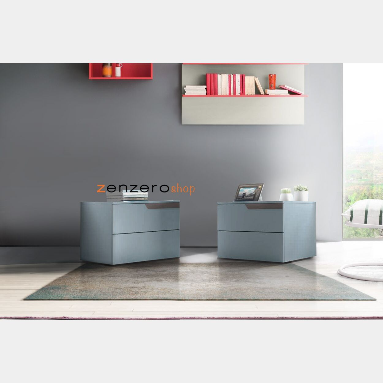 Comodini moderni 2 cassetti per la zona notteLa coppia di comodini della collezione Aquila per la zona living room è disponibile nella finitura Cenere.I comodini hanno 2 cassetti con apertura push-pull.
